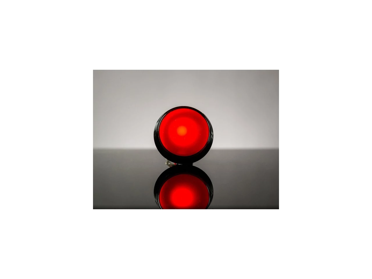 This button has a flat red plastic cover with a black retaining ring around it. There's an optional LED included that will light up the button. The LED has a built in resistor so you can run it up to 12V but given the shallow depth of the button, it doesn't illuminate the entire button face evenly. The button activates a common arcade microswitch (included), the switch contacts are normally open. When the button is pressed, the contacts close.