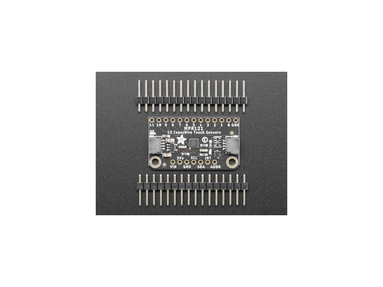 A szenzor önmagában igen csak picike, ezáltal nehéz volna a forrasztása, ezért már előre egy alaplapra építve kapod meg. Mivel hogy a chip maga csak 3V-os, ezért tettünk rá egy 3V-os szabályzót és egy I2C szint váltót, vagyis ezáltal biztonságosan használhatod bármelyik 3V-os, vagy 5V-os mikrokontrollerrel, vagy processzorral, mint például az Arduino. Még egy LED lámpa is található a lapkán, az IRQ vonalon, szóval, amikor az eszköz érzékeli az érintést, a lámpa felvillan, így lehetővé téve az egyszerűbb és gyorsabb hibakeresést is. A megrendeléshez egy teljesen összeszerelt modult kapsz és egy 0.1"-os csatlakozó fejet, amivel breadboardhoz tudsz csatlakozni. Az érintkezéseknél ajánljuk, hogy használj réz fóliát, vagy pyralux-ot, majd forrasz egy vezetéket, ami összeköti a fóliát és a modult.