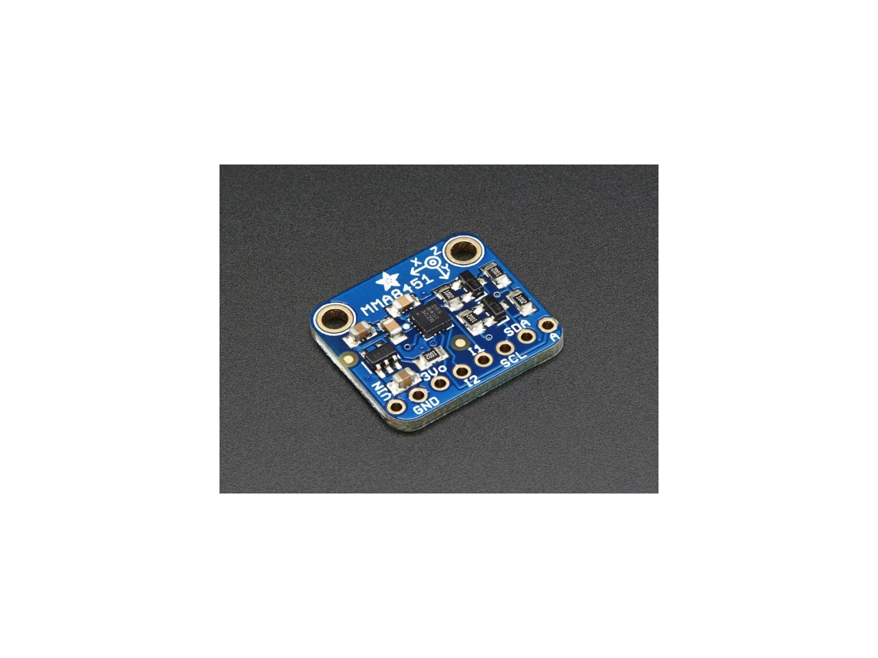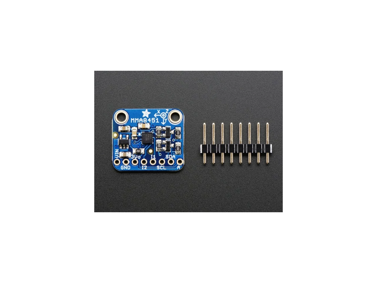 A miniatűr MMA8451 a gyorsulásmérők királyának terméke, a Freescale alkotta meg. Telefonokhoz, tabletekhez, okosórákhoz és hasonló eszközökhöz lett kitalálva, de szuper része lehet bármelyik Arduino projektednek is. Az MMA8451/MMA8452/MMA8453 családból az MMA8451 a legprecízebb, ugyanis beépített 14 bites ADC-vel rendelkezik. Ezen felül beépített dőlés és pozíció meghatározó rendszerrel is rendelkezik, vagyis megállapítja, hogy projekted éppen függőlegesen, vagy vízszintesen helyezkedik-e el, valamint hogy előre, vagy hátra dől-e.