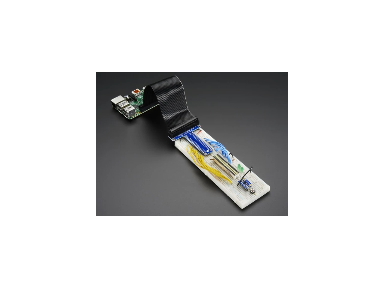 Adafruit 2028 GPIO - próbapanel összekötő T-KIT 2x20 pólussal a Raspberry Pi panelekhez. Alkalmazásával biztonságosan és egyszerűen kivezethetjük a GPIO mind a 40 érintkezőjét egy próbapanelre.
