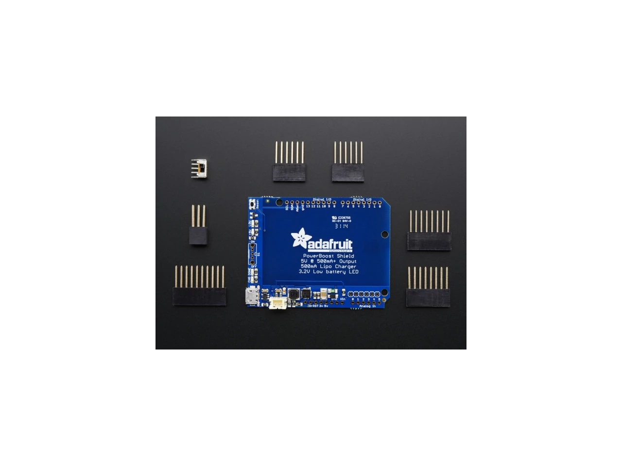 Mit ér egy projekt, ha az asztalodon ragad? A PowerBoost 500 Shield segítségével most bárhová magaddal viheted az Arduino-t, ahová csak szeretnéd! Ez az Arduino-ra helyezhető bővítmény kiegészítve egy Li-polimer cellával, amit természetesen külön kell megvásárolni, egy vékony, újratölthető tápegységet biztosít, beépített akkumulátortöltővel, valamint DC/DC boosterrel.