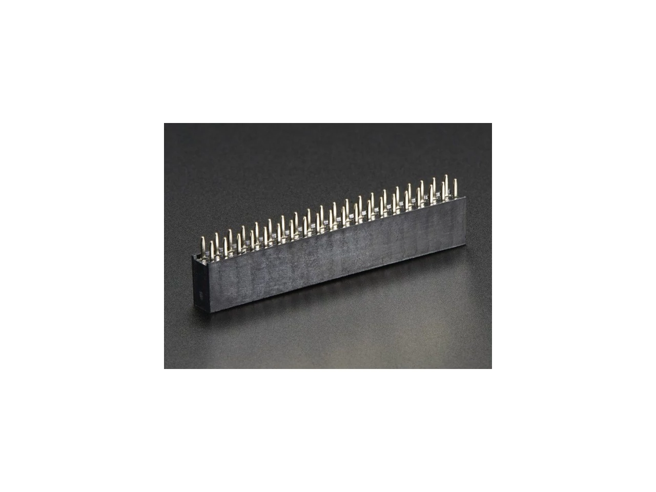 Adafruit 2222 GPIO csatlakozó 2x20 pólussal Raspberry Pi panelekhez. A műanyag rész magassága 8.5mm, míg a csatlakozó teljes magassága lábakkal együtt 11.5mm.