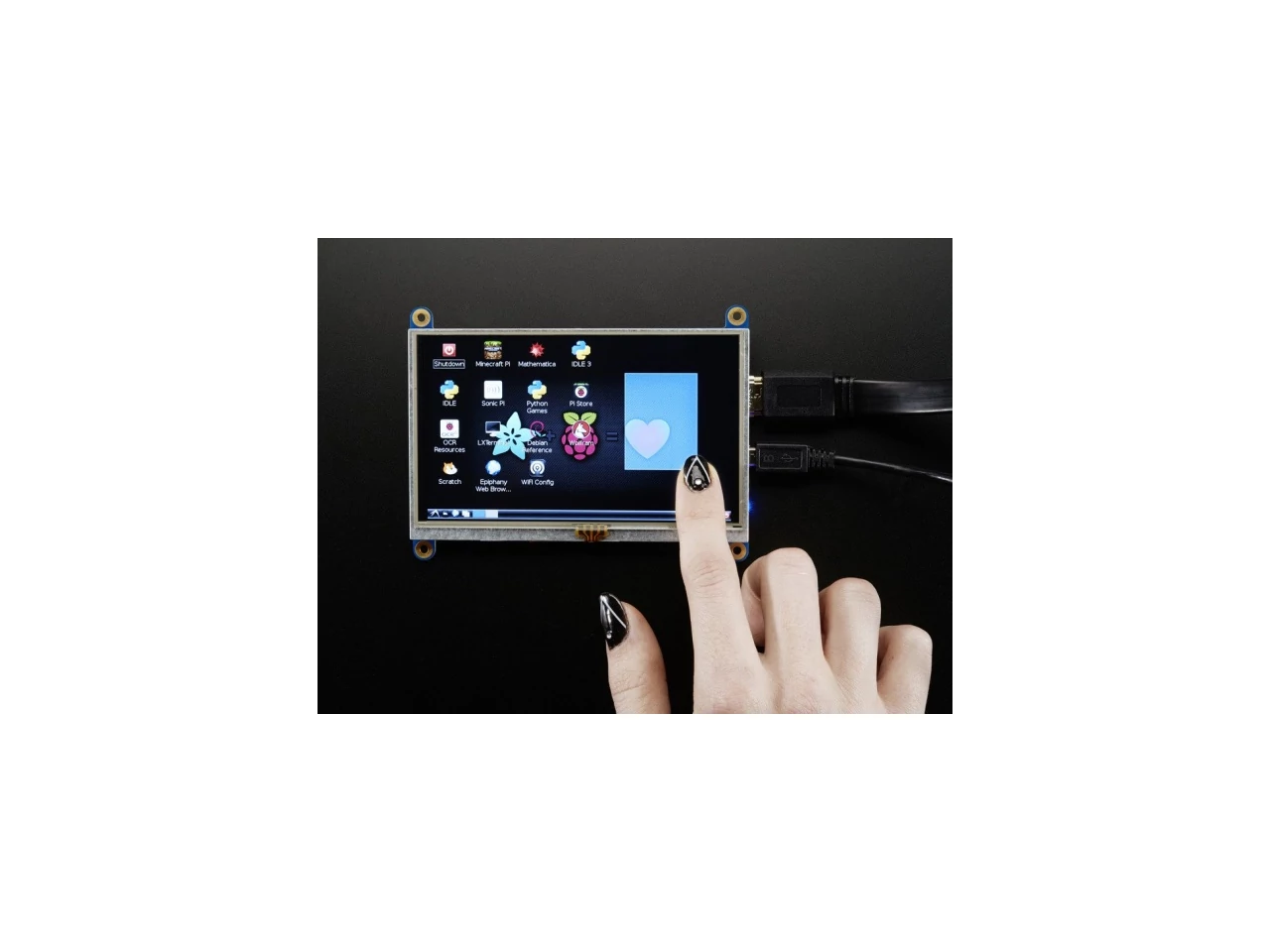 A készülékből kétféle is kapható, az egyik csak videó megjelenítésére alkalmas, míg a másik érintőképernyővel is rendelkezik. A képen látható eszköz, az utóbbi! Az érintőképernyő USB-s egérként jelenik meg, tehát semmilyen speciális driverre nincs szükség. Sikeresen lett tesztelve a következő rendszereken: Mac, Windows, Debian Linux (Raspbian, Rasberry Pi-n). Egyéb Linux verziókkal előfordulhat, hogy nem működik, de tapasztalt Linux felhasználóként ez talán nem is olyan meglepő . Továbbá nem működik Raspberry Pi + Windows 10 IOT kombóval sem.