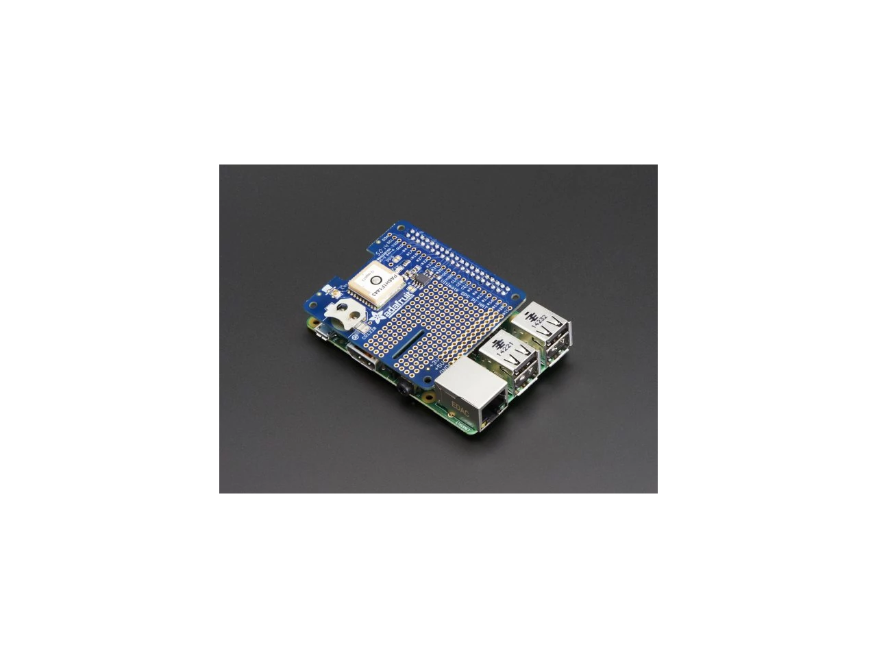A HAT, valójában a nagyszerű GPS modulunkon alapszik, melyhez hozzáadtunk egy gombelem tartót, az RTC használathoz, csatlakozási pontokat a különböző Raspberry Pi-k extra tüskéihez, valamint számtalan csatlakozási pontot a különböző kísérletezésekhez, például LED-ek, szenzorok és egyebek bekötéséhez.
