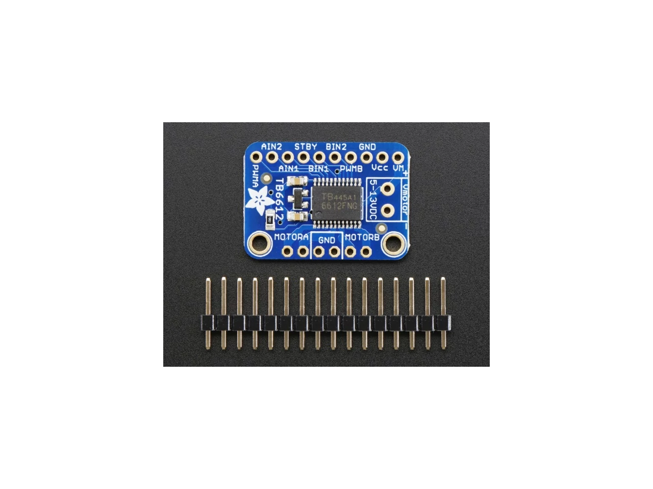 Spin two DC motors, step one bi-polar or uni-polar stepper, or fire off two solenoids with 1.2A per channel using the TB6612. These are perhaps better known as "the drivers in our assembled Adafruit Motorshield or Motor HAT." We really like these dual H-bridges, so if you want to control motors without a shield or HAT these are easy to include on any solderless breadboard or perma-proto.