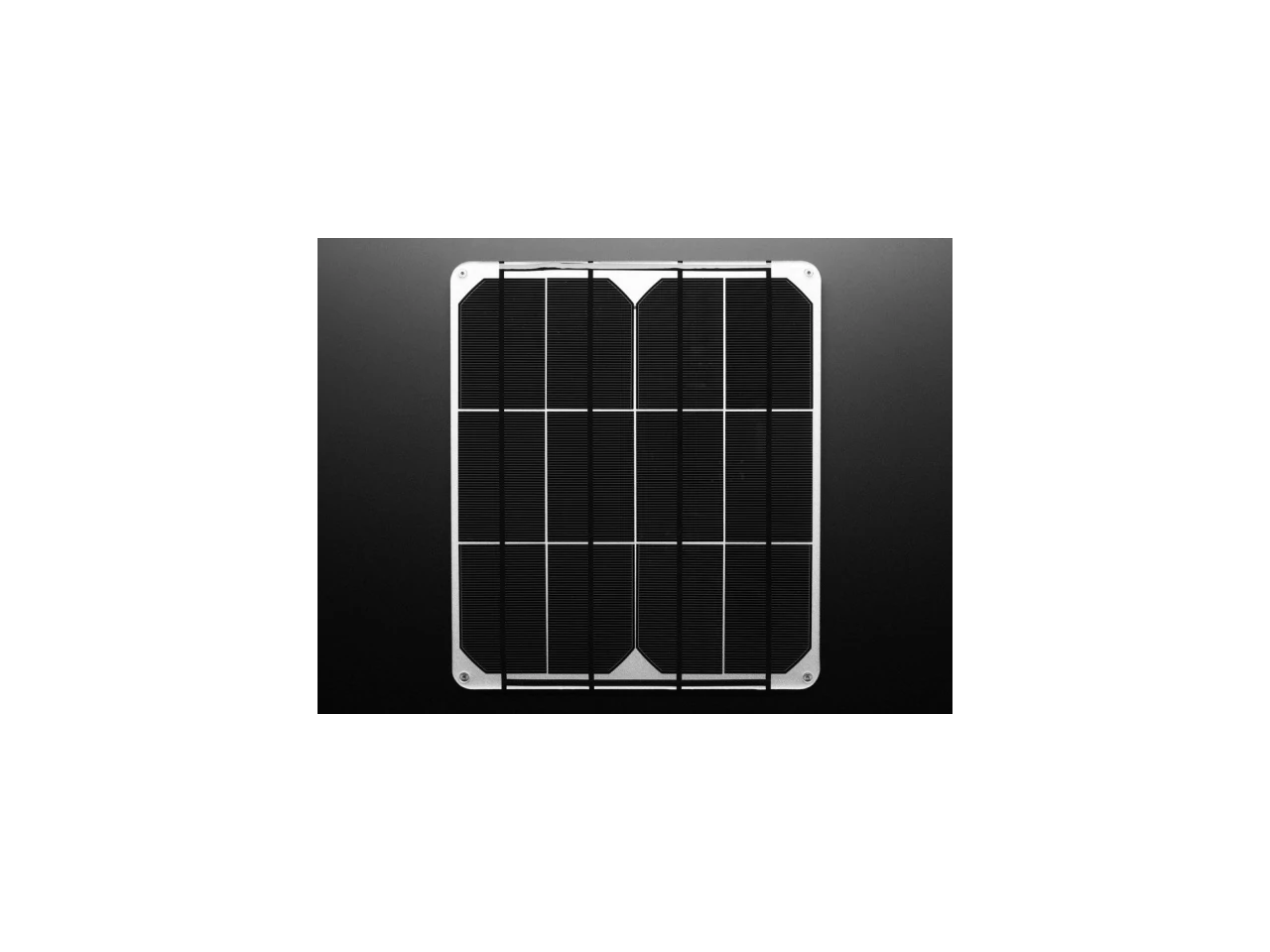 Using a high efficiency monocrystalline cell and outputting 6V at ~1.5A via 3.5mm x 1.1mm DC jack connector, they are a nice upgrade to the 2W or 3W panels we have been carrying. The substrate is an aluminum / plastic composite, specifically designed to be strong and lightweight. These panels can easily stand up to typical outdoor use including being dropped and leaned on. They're very high quality and suggested for projects that will be exposed to the outdoors. These come with 4 plastic mounting screws which makes it easy to attach the panel, even to fabric!