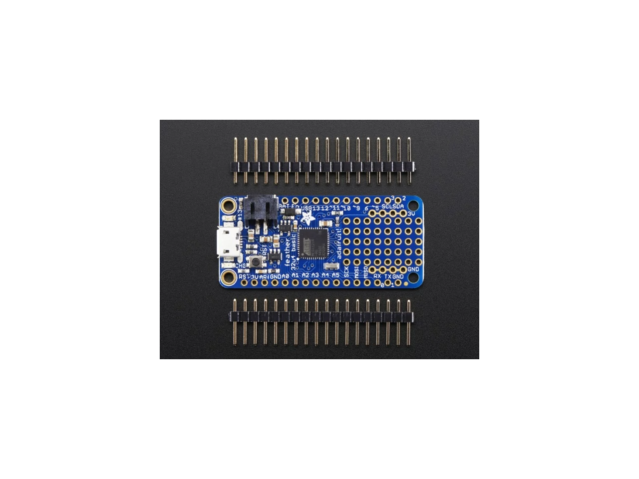 A Feather 32u4 központi eleme egy ATmega32u4 processzor 8Mhz-es órajellel, 3.3V-os logikával. A chip típusa megegyezik a FLORA projektekben alkalmazott vezérlőchip típusával, amivel már rengeteg összegyűjtött tapasztalat van. A vezérlő 32K flash memóriával, 2K RAM memóriával, beépített USB csatlakozással és soros port programozási és hibakeresési funkciókkal rendelkezik. Ez utóbbi szükségtelenné teszi FTDI adapter vagy kábel alkalmazását. A chip lehetővé teszi, hogy a Feather 32U4 Basic Proto-t egér, billentyűzet vagy USB MIDI eszközként alkalmazzuk. Az eszközt támogatja az Arduino IDE, így számos érzékelő kezelhető könnyedén a letölthető library-k segítségével.