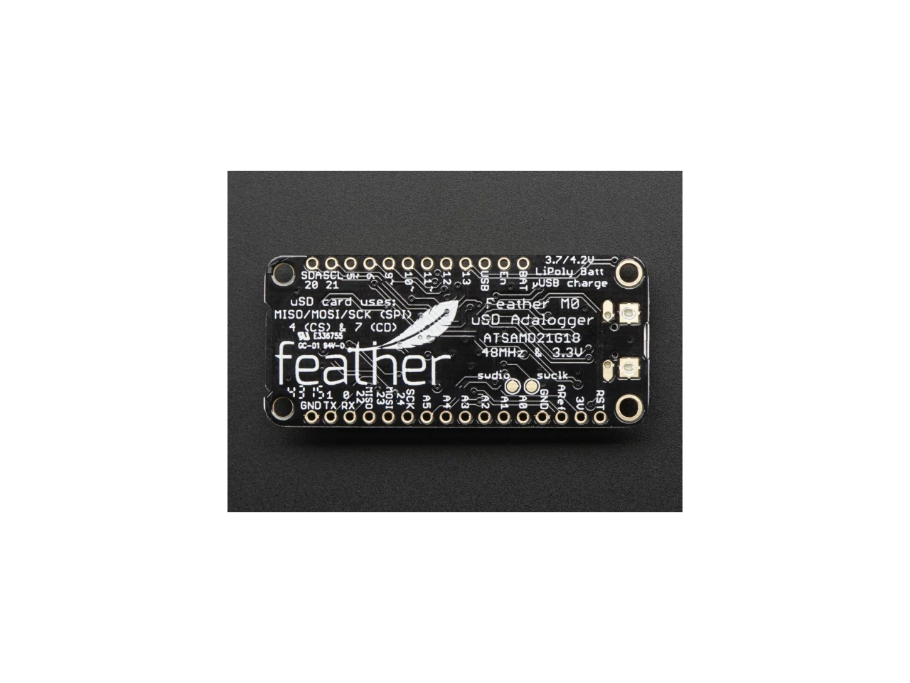 A2796 Adafruit Feather M0 Adalogger - A Feather az Adafruit új fejlesztő-kártyája, nevéhez híven (feather - madártoll) könnyű, átlátható, jól kezelhető eszköz. A Feather-t tervezői a hordozható mikrokontrollerek új szabványának szánták.