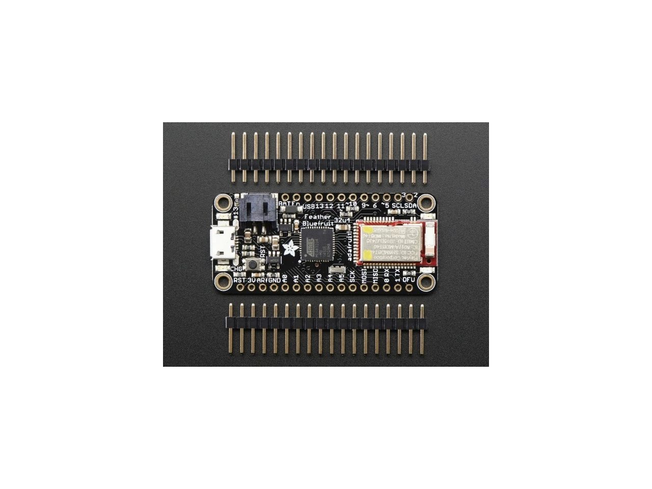 This is the Adafruit Feather 32u4 Bluefruit - our take on an 'all-in-one' Arduino-compatible + Bluetooth Low Energy with built in USB and battery charging. Its an Adafruit Feather 32u4 with a BTLE module, ready to rock! We have other boards in the Feather family, check'em out here.