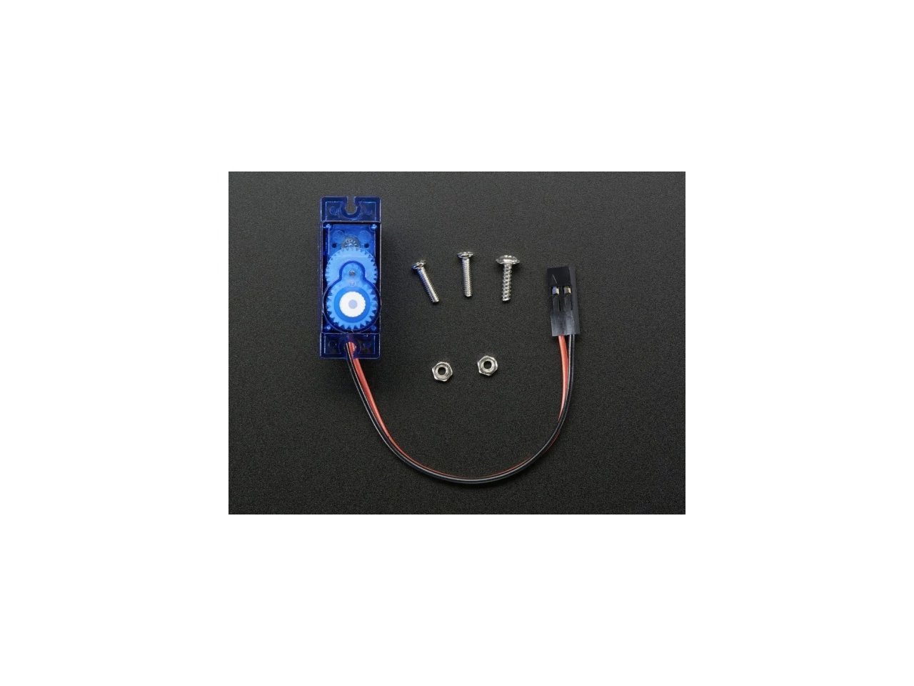 A2941 DC Motor in Micro Servo Body - Ezt az apró egyenáramú motort egy mikró szervomotor házába építették. Érdekes megoldás, mivel ugyanolyan méretű és alakú, mint a mikro szervónk, de ez egy DC motor + műanyag fogaskerék-hajtáslánc egy dobozban. Ez nem egy szupererős motor, jól megtenné egy kis robotkeréknek. Sokkal olcsóbb is, mint egy kis szervó (folyamatos vagy nem folyamatos), mert nincs benne vezérlőpanel. A sebesség vezérlését PWM tápellátással, míg az irányváltást a vezetékek polaritásának felcserélésével oldhatjuk meg, akárcsak bármelyik kefés egyenáramú motornál.