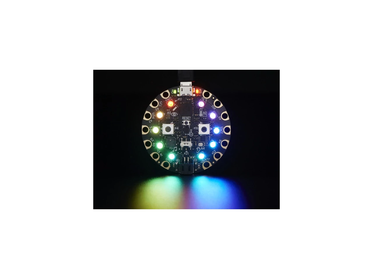 Ez az eszköz a Classic verziója a Circuit Playgroundnak, aminek a szívét egy ATmega32u4 képezi. Kizárólag Arduino IDE-vel és code.org CS Discoveries-sel programozható. A Firmata már előre bele van programozva, szóval azonnal használhatod is a code.org Discoveries-sel bármilyen előkészület, vagy frissítés nélkül.