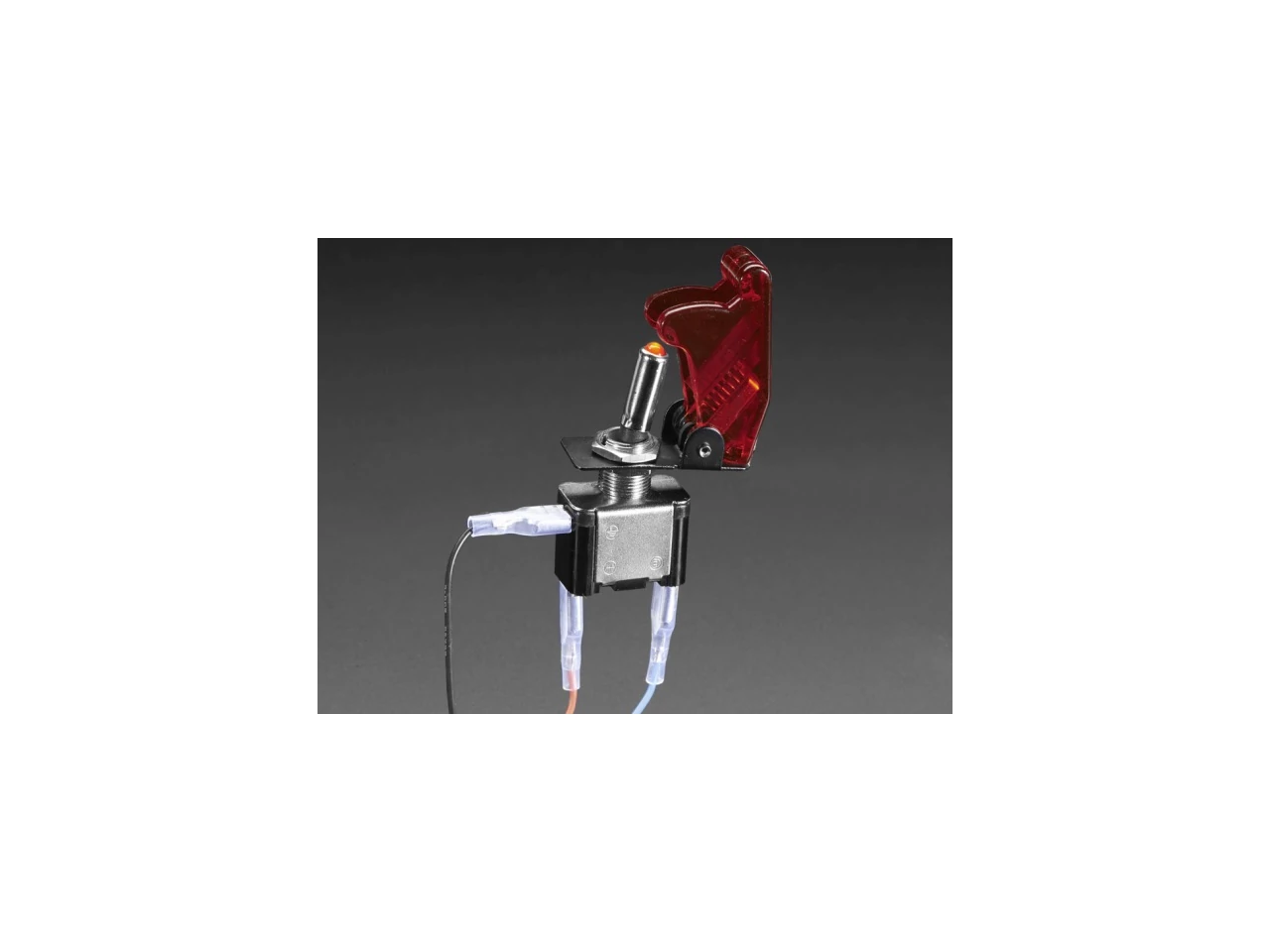 Fire up your engines because these are the hot-rods of toggle switches! Equipped with an aerodynamic red protective casing, and a red LED at the tip of the switch, this Red LED Toggle Switch is sure to add some flair (and flare!) to your project.