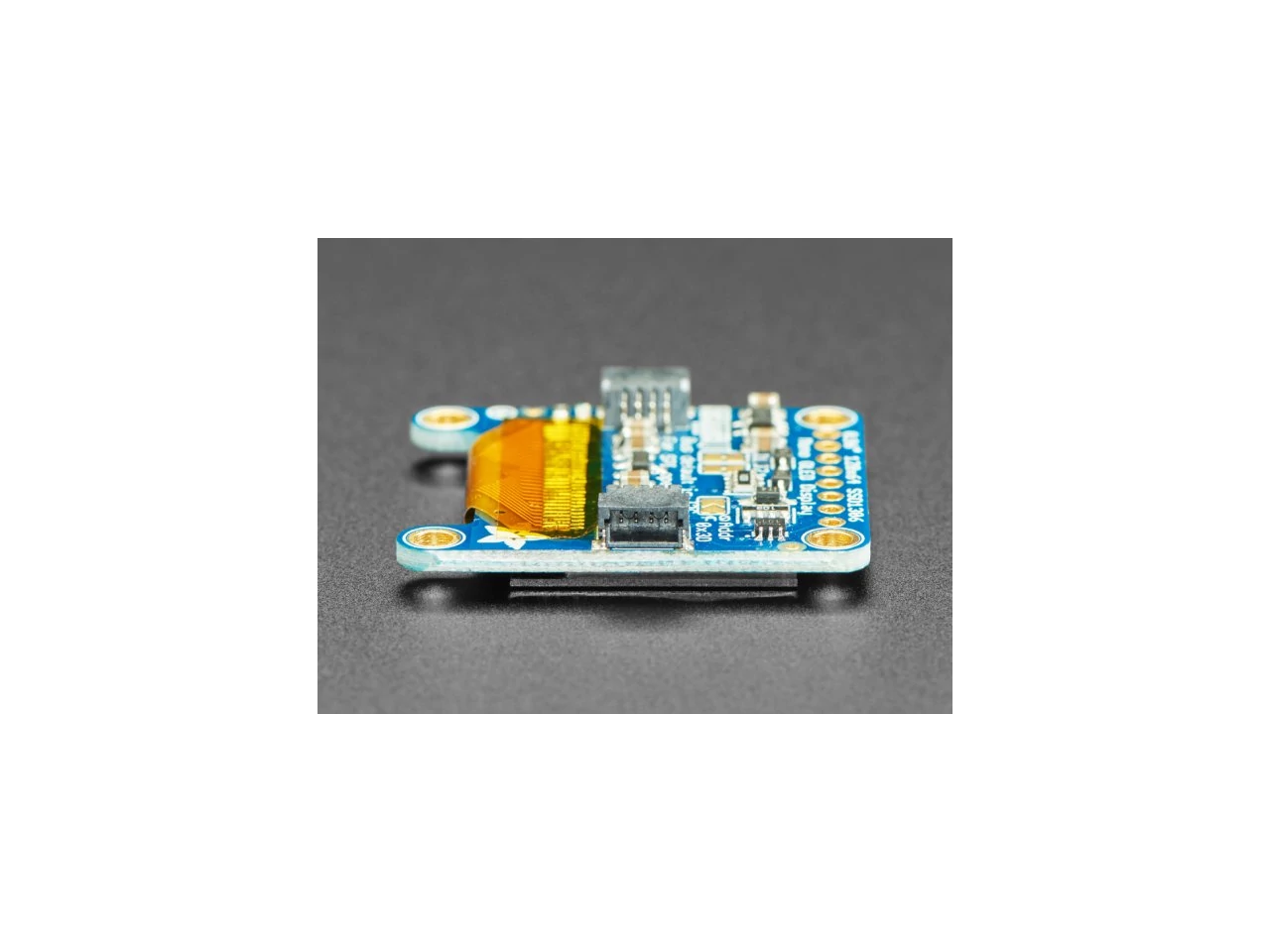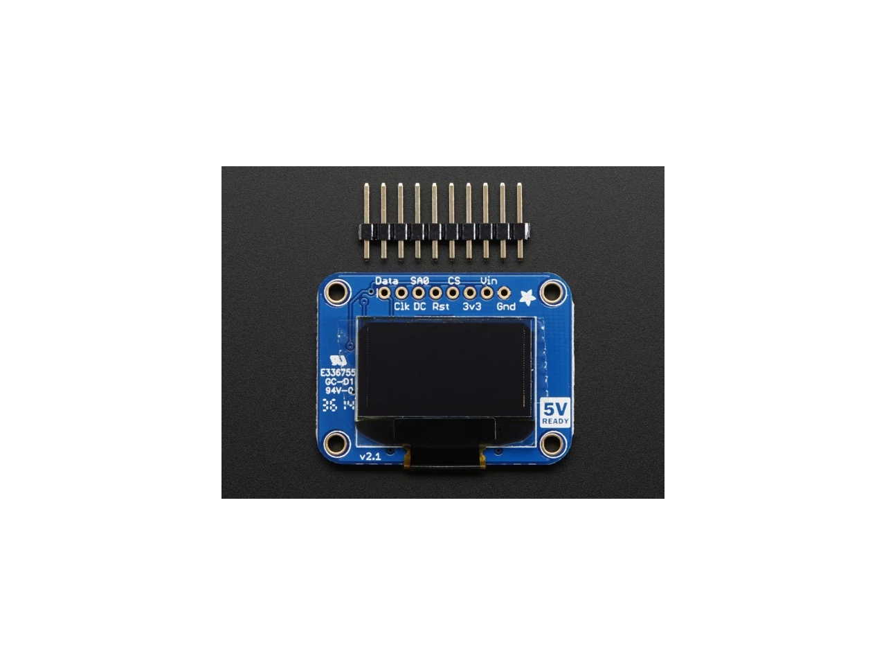 These displays are small, only about 1" diagonal, but very readable due to the high contrast of an OLED display. This display is made of 128x64 individual white OLED pixels, each one is turned on or off by the controller chip. Because the display makes its own light, no backlight is required. This reduces the power required to run the OLED and is why the display has such high contrast; we really like this miniature display for its crispness!