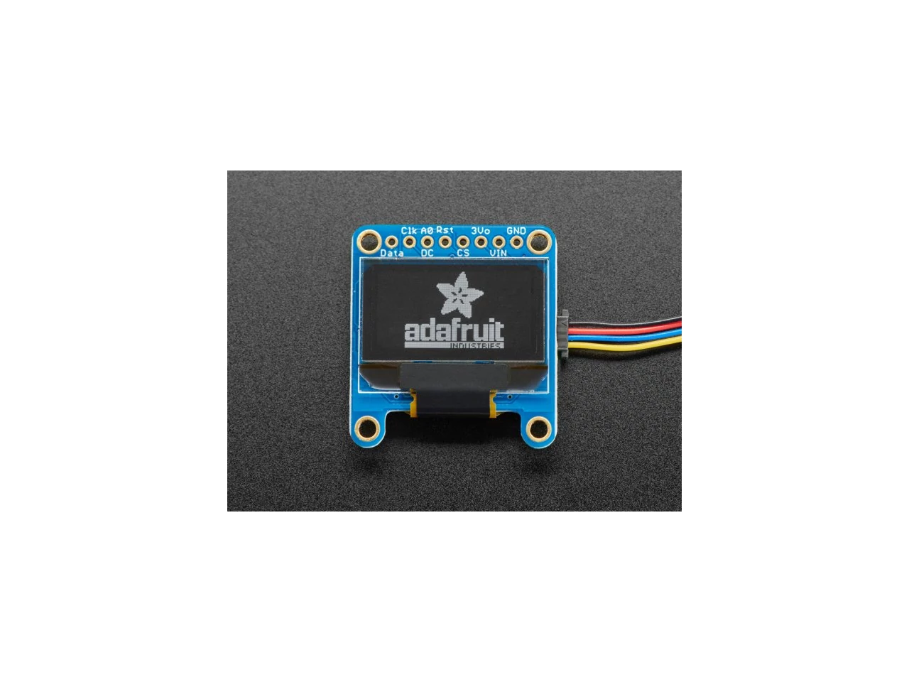 These displays are small, only about 1" diagonal, but very readable due to the high contrast of an OLED display. This display is made of 128x64 individual white OLED pixels, each one is turned on or off by the controller chip. Because the display makes its own light, no backlight is required. This reduces the power required to run the OLED and is why the display has such high contrast; we really like this miniature display for its crispness!