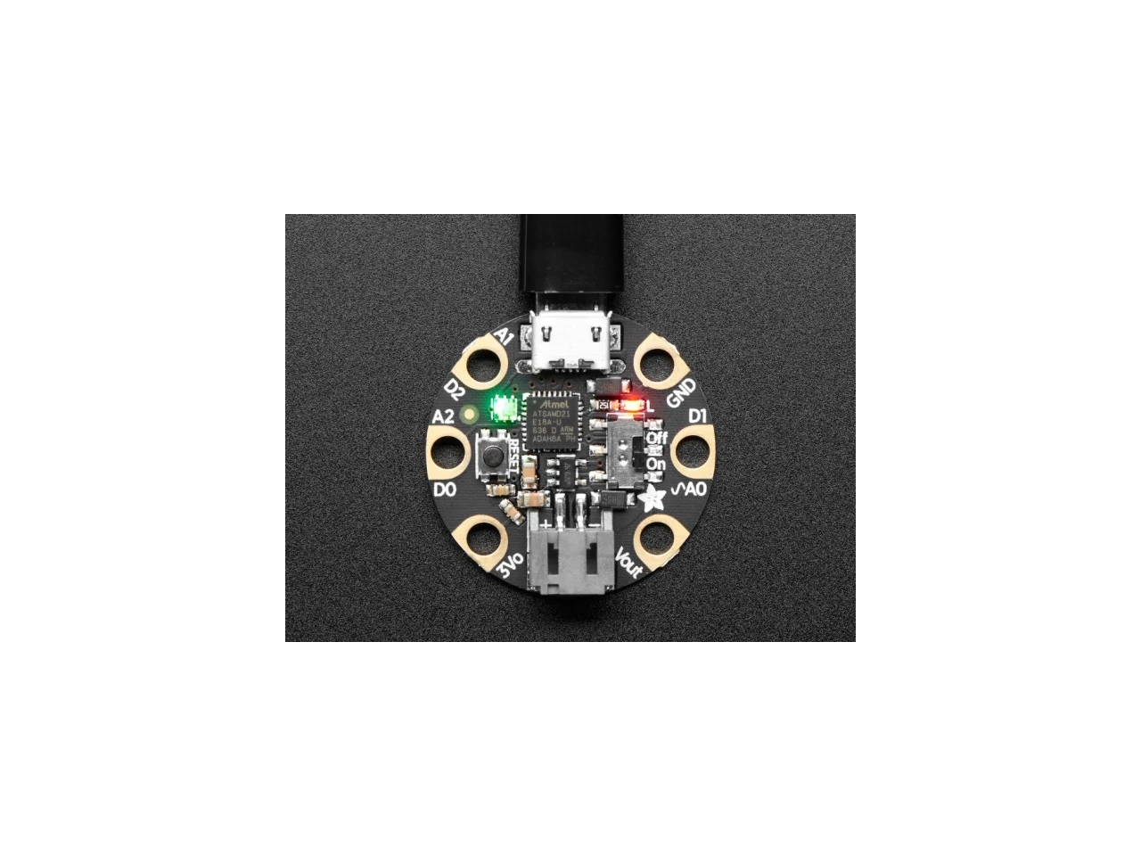 The Adafruit Gemma M0 is a super small microcontroller board, with just enough built-in to create many simple projects. It may look small and cute: round, about the size of a quarter, with friendly alligator-clip sew pads. But do not be fooled! The Gemma M0 is incredibly powerful! We've taken the same form factor we used for the original ATtiny85-based Gemma and gave it an upgrade. The Gemma M0 has swapped out the lightweight ATtiny85 for a ATSAMD21E18 powerhouse.