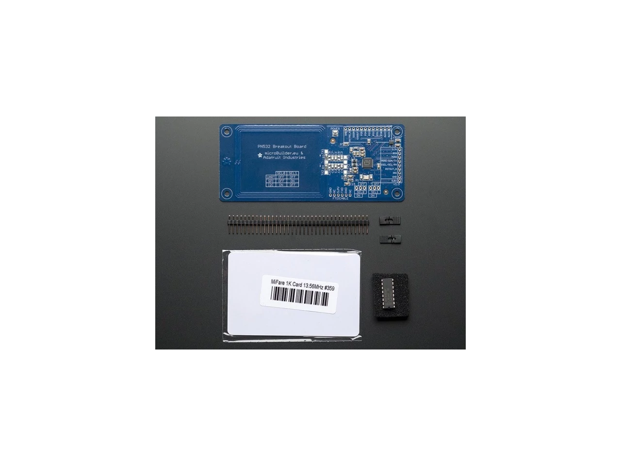 A PN532-es csomag tartalmaz egy hangolt 13.56MHz-es fólia antennát, 2.54mm-es tüskesort, 2db jumpert/átkötést és egy 4050-es szintillesztő IC-t, na meg egy Mifare Classic 1K kártyát. (Más "tag"-eket is vásárolhatsz hozzá választékunkból)