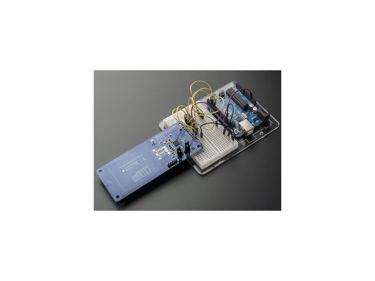 A PN532-es panel nagyon rugalmas, mert kommunikálhatsz vele 3.3V-os TTL UART-on bármilyen baud rate-tel, illetve I2C vagy SPI interfészen keresztül. Ezt a chipet különösen támogatja a libnfc, egyszerűen csak kösd össze egy FTDI kábellel és használd az FTDI soros portot a kommunikációhoz - ez lehetővé teszi, hogy bármilyen Linux/Mac/Windows számítógép használatát az NFC fejlesztéshez! A panelen egy LED jelzi vissza a 3.3V-os tápellátást. Az FTDI csatlakozó tüskesorra rádughatod az A284 FTDI friend panelt, vagy az A70 FTDI soros kábelt és már használhatod is a libnfc-vel.