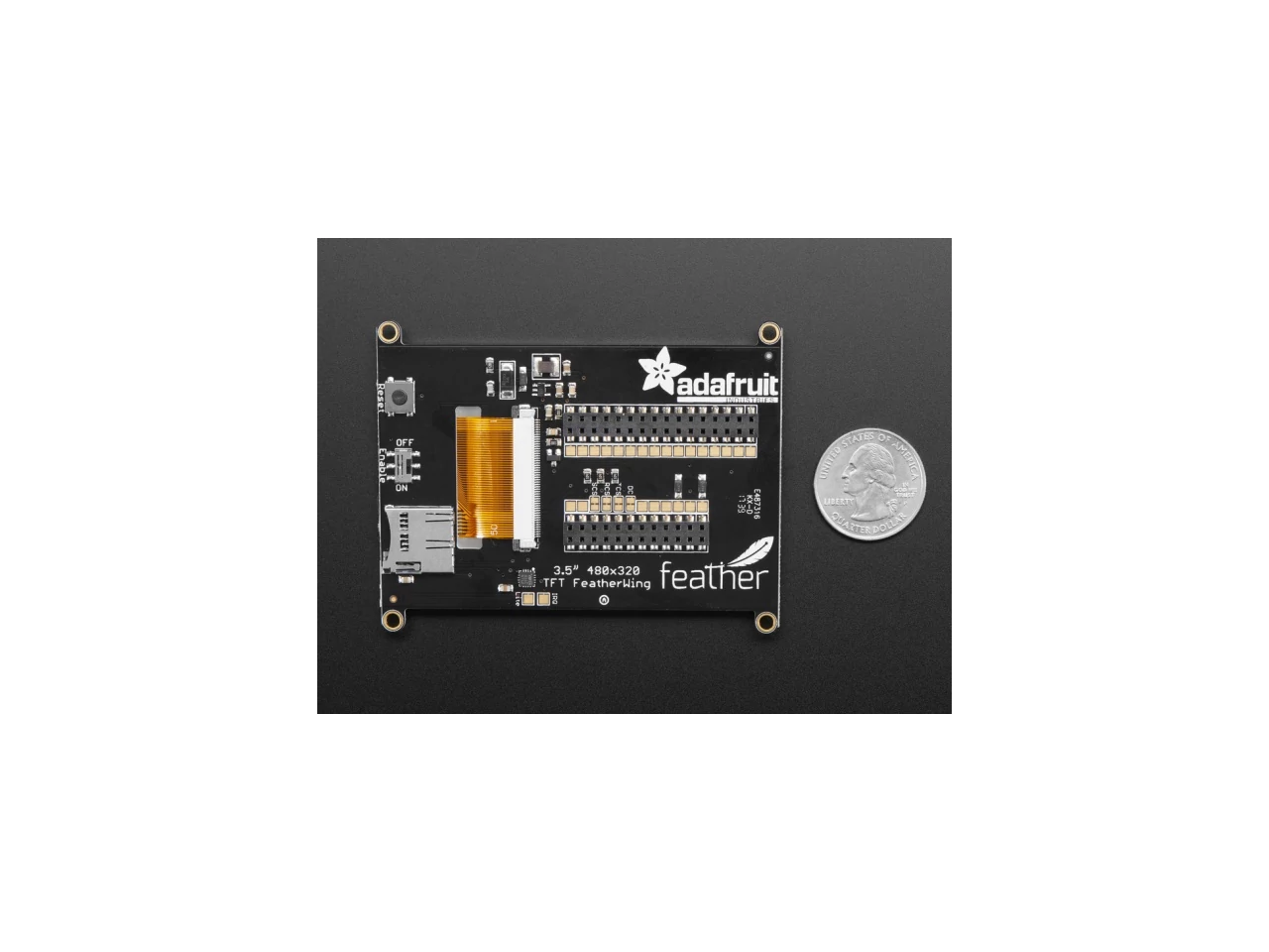 Spice up your Feather project with a beautiful 3.5" touchscreen display shield with built in microSD card socket. This TFT display is 3.5" diagonal with a bright 6 white-LED backlight. You get a massive 480x320 pixels with individual 16-bit color pixel control. It has way more resolution than a black and white 128x64 display, and twice as much as our 2.4" TFT FeatherWing. As a bonus, this display comes with a resistive touchscreen attached to it already, so you can detect finger presses anywhere on the screen