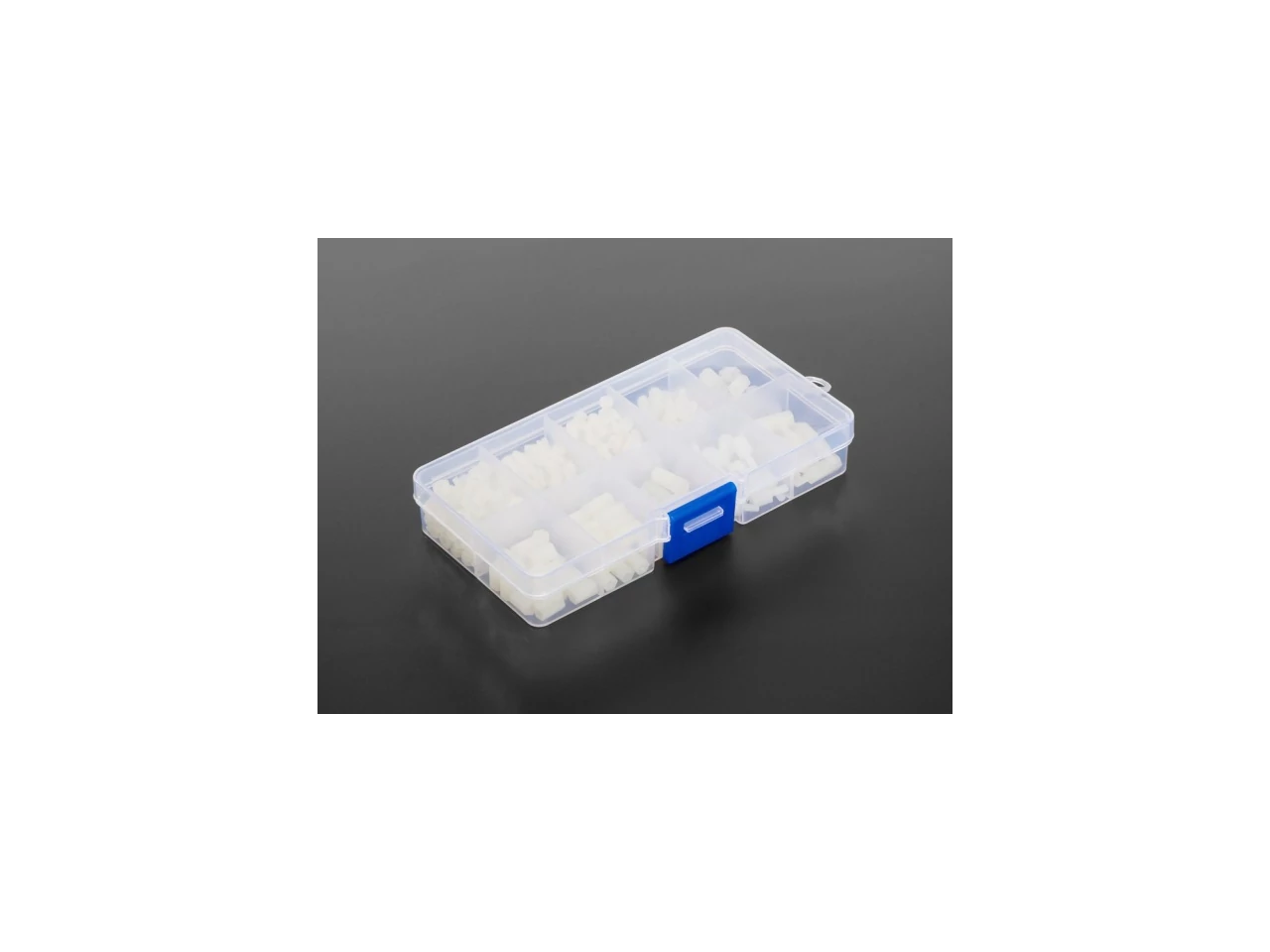 Totaling 420 pieces, this White Nylon M2.5 Screw Set is a must-have smörgasbord for your workstation. You'll have more than enough screws, nuts, and hex standoffs to construct your maker projects for days on end! M2.5 screws fit nearly all of the Adafruit breakout/development board mounting holes (2.5mm or 0.1' drill holes). These screws work handsomely with our Feathers, Adafruit breakout boards, Pi HATs and plates, and more! Since the screw set is nylon, you can file pieces down easily, and they don't conduct electricity or interfere with antennae/magnetometers.