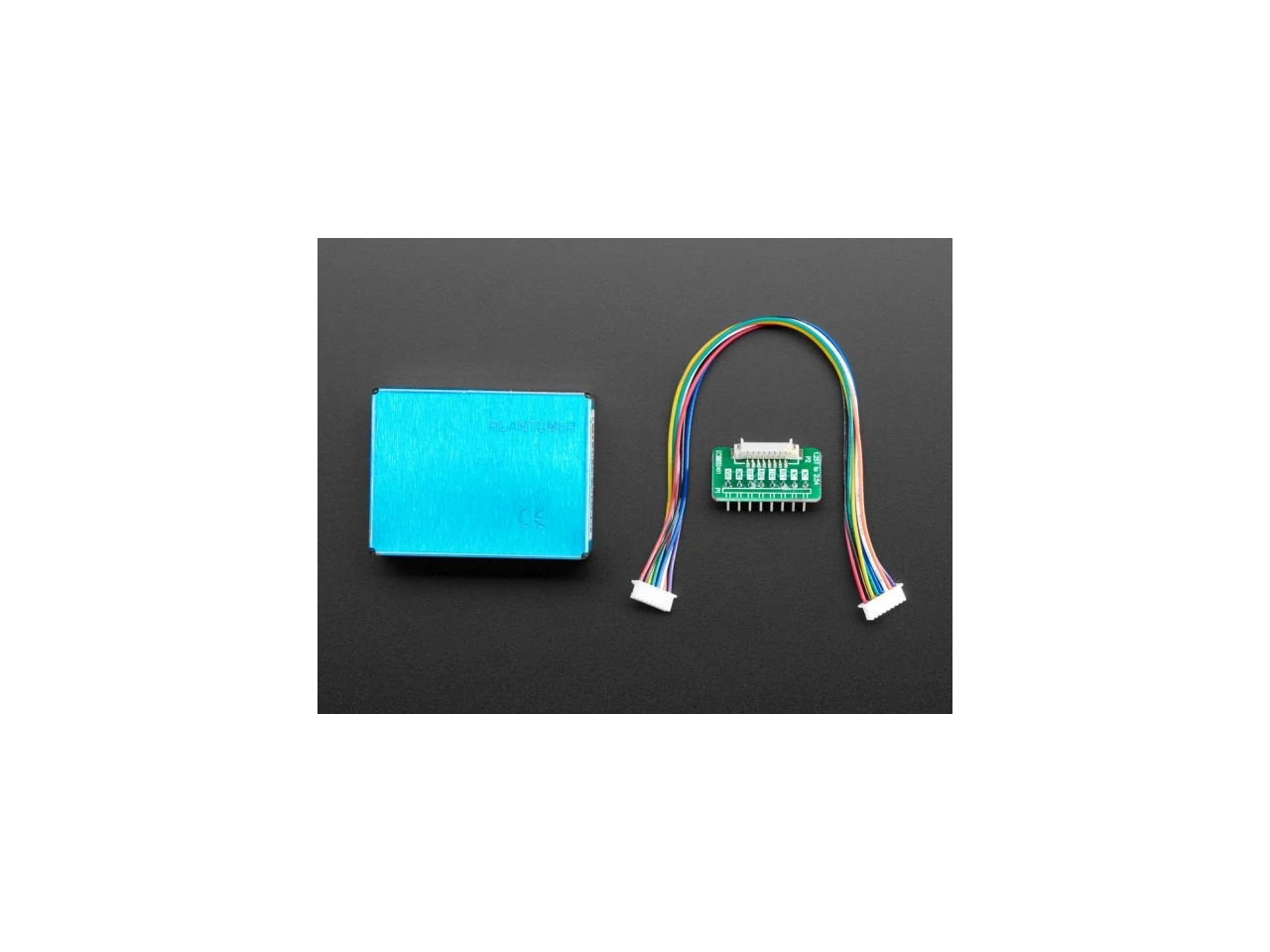 Az érzékelődobozt, valamint a kábelt és egy 0,1" / 2,54 mm-es breakout lapot adunk, így könnyen bekábelezheti. Csak tápellátásra és egy adattűre van szüksége (az UART TX számára). A tápellátás 5V, a logika 3,3V.