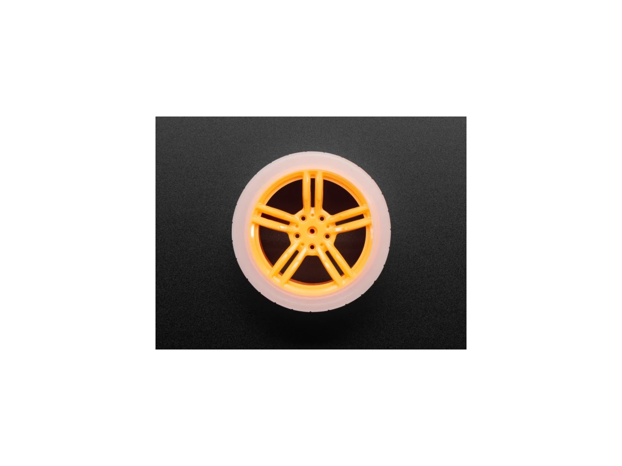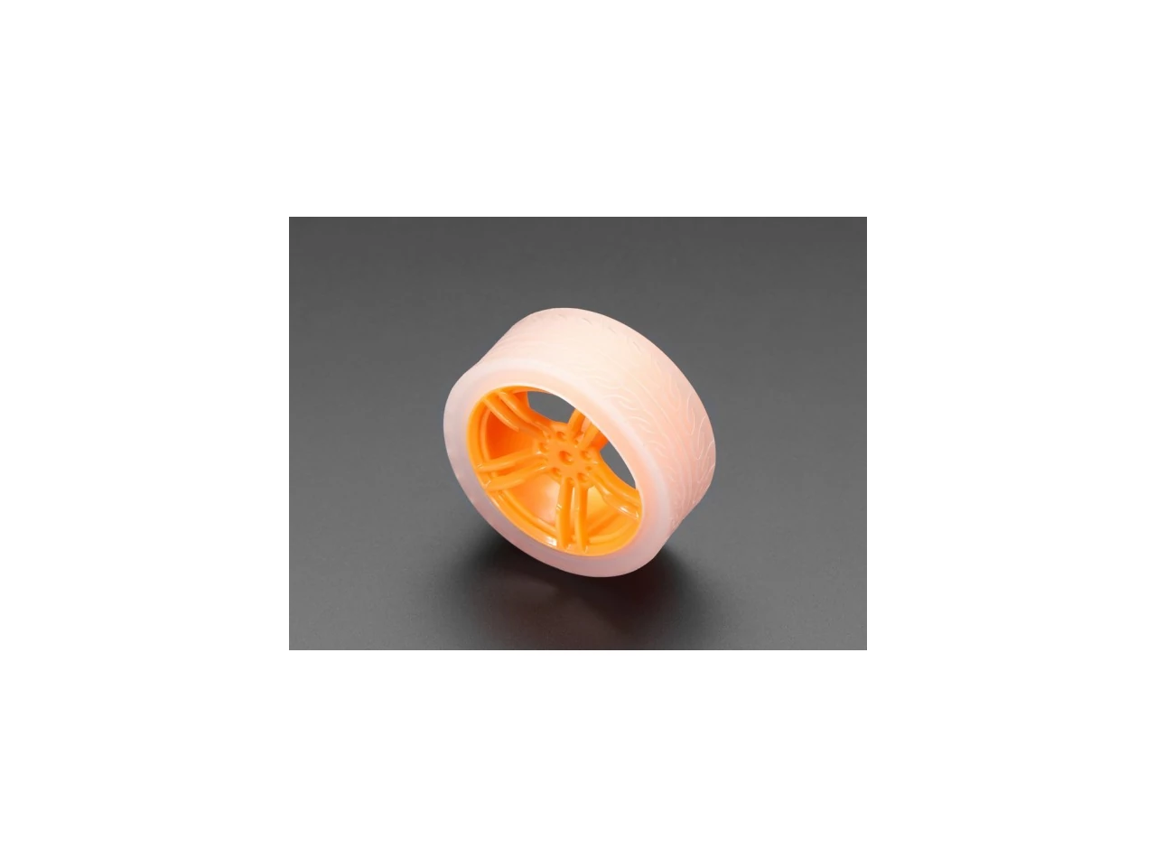 Need a great drive solution for your little robotic friends? This Orange & Clear TT Motor Wheel is equipped with a nice, thick silicone tread and a press-fit design to make connecting super quick and easy. Make cute robots today with a couple of these orange wheels!