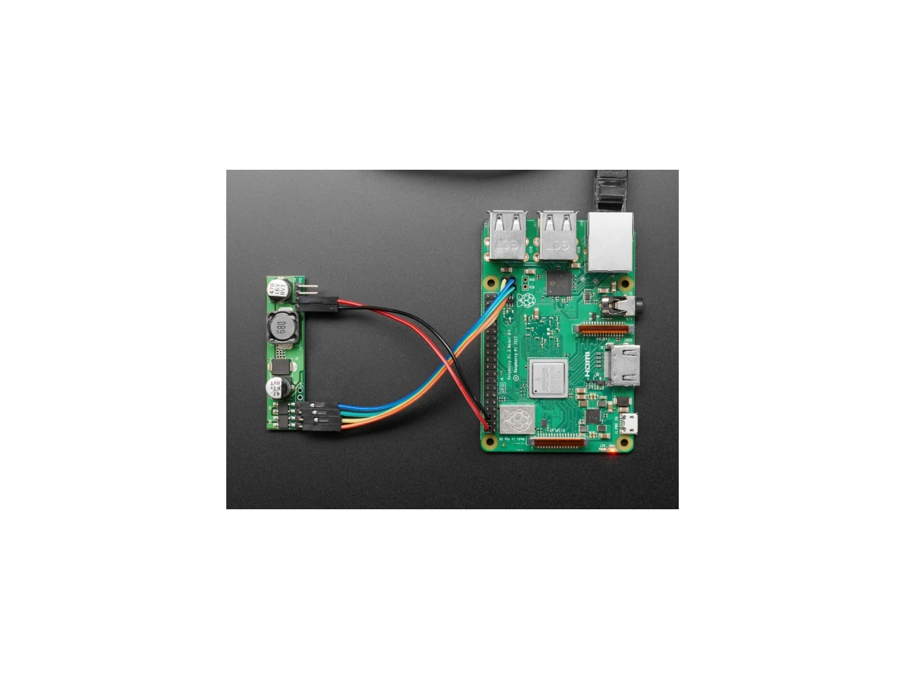 This module works well with the Raspberry Pi 3 Model B+, which has the 4 wires on a header. As you can see in our photos, you just need some female-female jumper wires to get the Ethernet wires to the module, and then two wires to bring the 5V back to the header. Note that even though a 2.5A power supply is recommended for a Pi 3B+, that's only required if you attach a bunch of accessories (such as a 7" display!) 1.5A will cover a wide range of usages, as the current draw is around 0.7A max without extras.