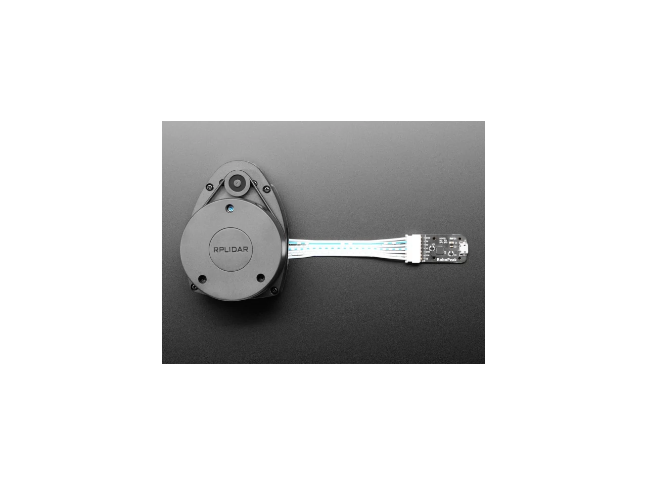 The sensor comes with a onboard connector with power and data pins. You can power from 5V, and data is 3V logic "TTL" serial. You could in theory power and communicate directly over the serial pins, but for most computers, it will be a lot easier to use a USB cable and connect to the included USB-serial converter dongle. Please note: despite having RP in the name, its not just for Raspberry Pi computers. Slamtec provides plug-n-play software that ran on our computer very easily and will plot out the 2D point cloud data for quick testing.