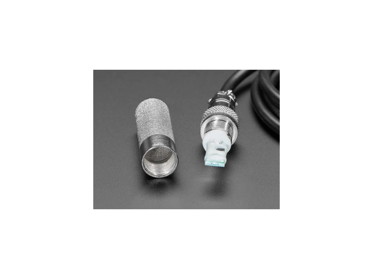 Take your next outdoor sensor project to the next level with this SHT-30 based temperature/humidity sensor. The sensor includes a dual-use sensor module from Sensirion in a sintered metal mesh encasing. The casing is weatherproof and will keep water from seeping into the body of the sensor and damaging it, but allows air to pass through so that it can measure the humidity outside. While it is designed to be submersible in water, it's always best to avoid long-term submersion (over 1 hour at a time), and it obviously would only give you temperature readings. For that, our metal-cased temperature sensors would be better! This sensor is best for simply placing outside for exterior weather sensing.