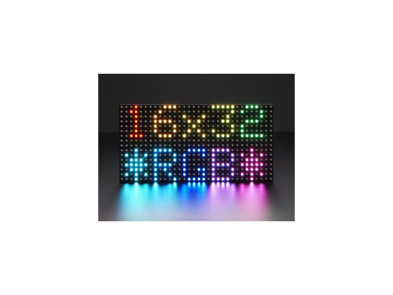 Vigyél egy kis Times Square hangulatot otthonodba ezzel a 16x32-es RGB LED mátrix kijelzővel! Általában ezeket a panelek használják a videó falakhoz, New Yorkban a buszok oldalán és a buszmegállókban láthatunk rajtuk animációkat és rövid videó klipeket. 512 darab hihetetlenül fényes RGB LED rendezett, 16x32-es rácsban az előlapon. A hátoldalon egy PCB, két IDC csatlakozó (egy bemenet, egy kimenet, mivel elméletileg láncba köthetőek) és 12 darab 16 bites latch található, amelyek lehetővé teszik a képernyő meghajtását egy 1:8-as beolvasási sebességgel.