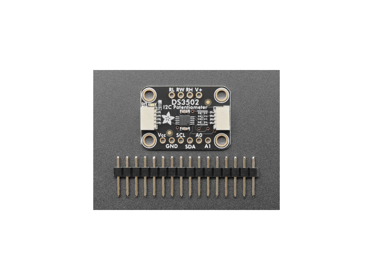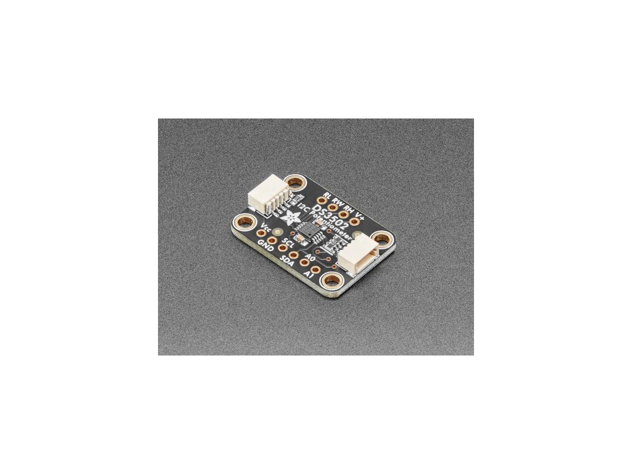 A DS3502-vel egyszerű dolgozni az I2C vezérlésnek köszönhetően. A szükséges támogató áramkörökkel és SparkFun qwiic kompatibilis STEMMA QT csatlakozókkal ellátott breakout PCB-re lett megépítve, hogy lehetővé tegyük a más hasonlóan felszerelt táblákkal történő használatot anélkül, hogy forrasztanunk kellene. A QT kábel nincs mellékelve a termékhez, de találsz a shopban többfélét is hozzá.