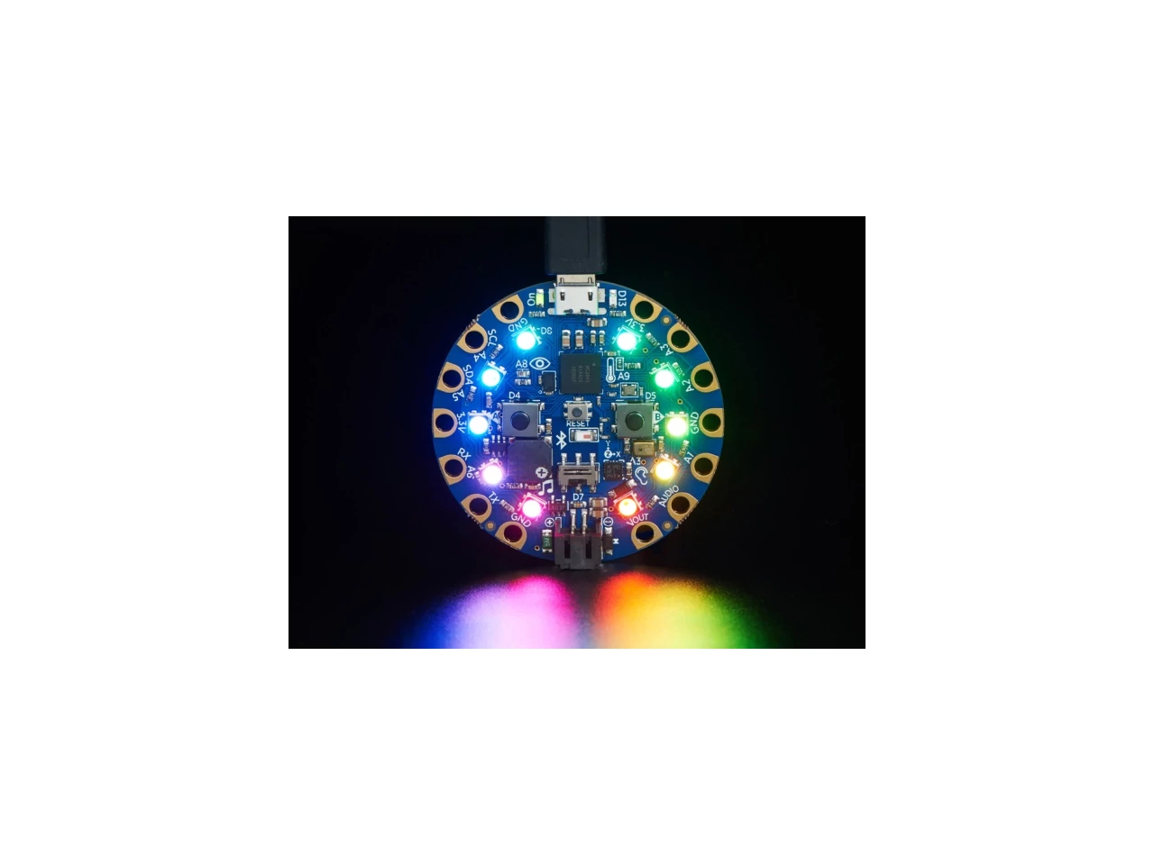A Circuit Playground Bluefruit a Circuit Playground sorozat harmadik tagja, egy újabb eszköz az elektronika és a programozás tökéletes bevezetésére. A népszerű Circuit Playground Express továbbfejlesztett változata! Most a fő chip egy nRF52840 mikrokontroller, amely nemcsak erősebb, hanem Bluetooth Low Energy támogatással is rendelkezik a vezeték nélküli kapcsolathoz.