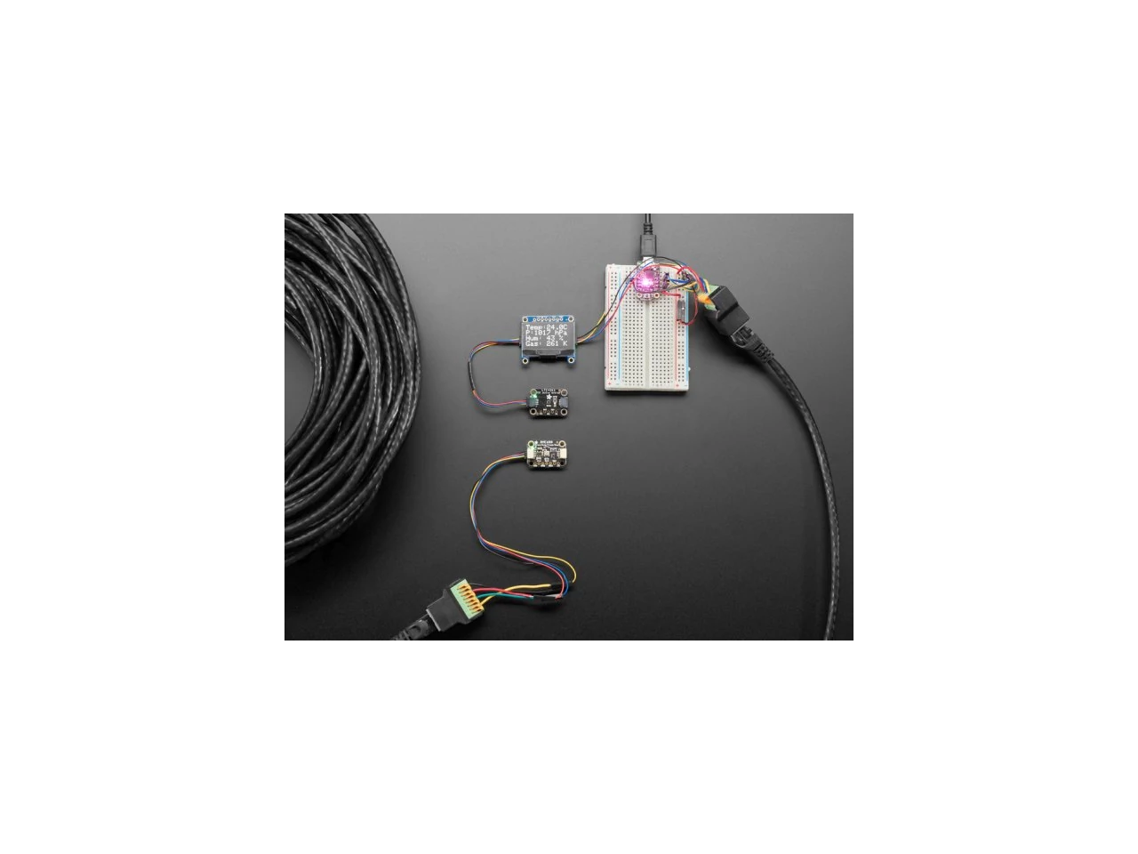 I2C stands for Inter-Integrated-Circuit communications, it's meant for short distances on a PCB or subassembly. But, hey, we're engineers, and we like to push the limits of technology, right? So why not try to have I2C run over a meter long cable, or even longer? Well, if you try to do that you'll quickly find that the length of the cable adds capacitance and resistance that slows down the open-drain pullups used in I2C, making it hard to use 100KHz+ clock speeds. You could try slowing down your I2C clock to 1 KHz...or you could use an Adafruit LTC4311 active terminator like this one!