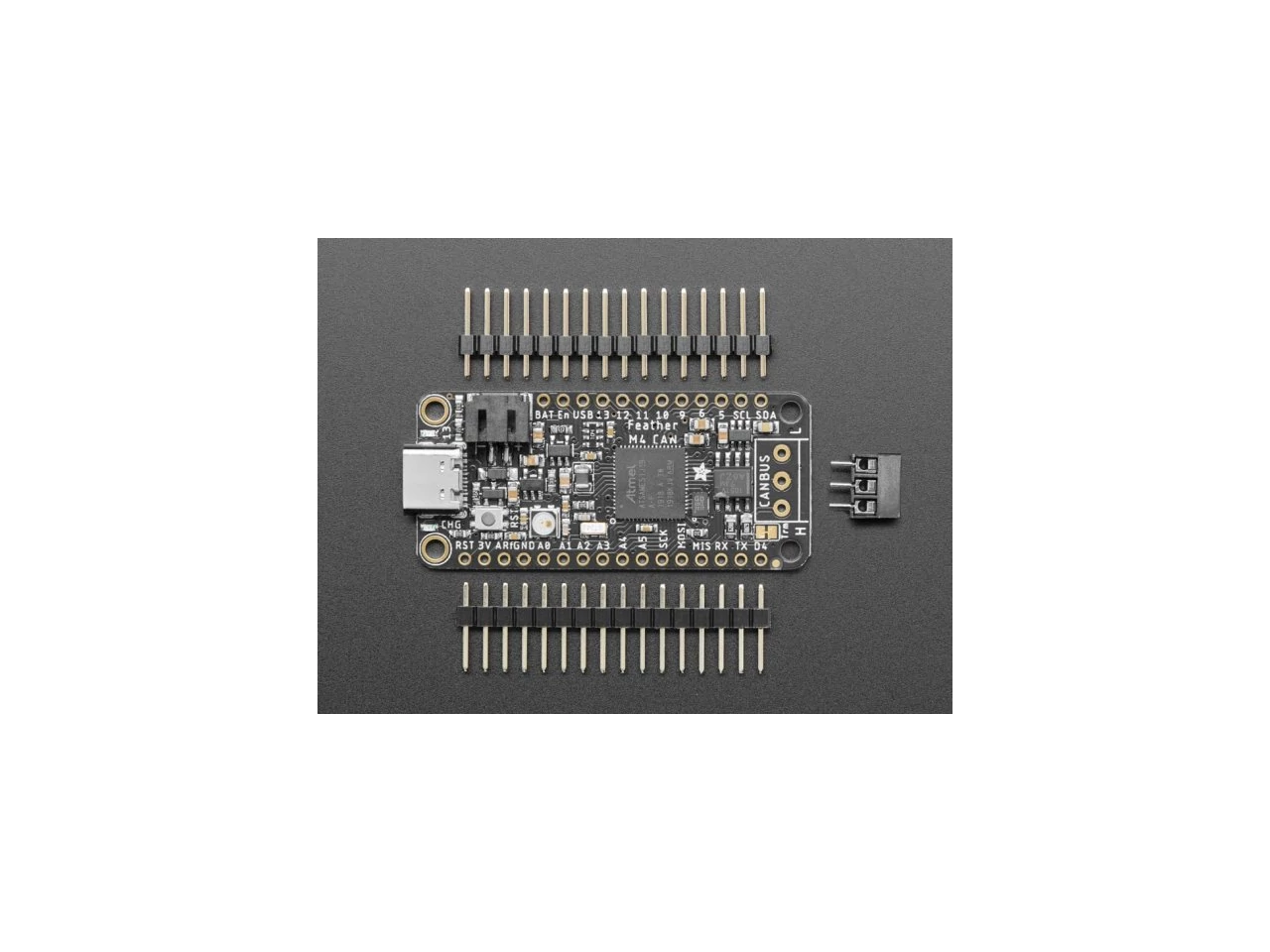 One of our favorite Feathers, the Feather M4 Express, gets a glow-up here with an upgrade to the SAME51 chipset which has built-in CAN bus support! Like its SAMD51 cousin, the ATSAME51J19 comes with a 120MHz Cortex M4 with floating point support and 512KB Flash and 192KB RAM. Your code will zig and zag and zoom, and with a bunch of extra peripherals for support, this will for sure be your favorite new chipset for CAN interfacing projects.