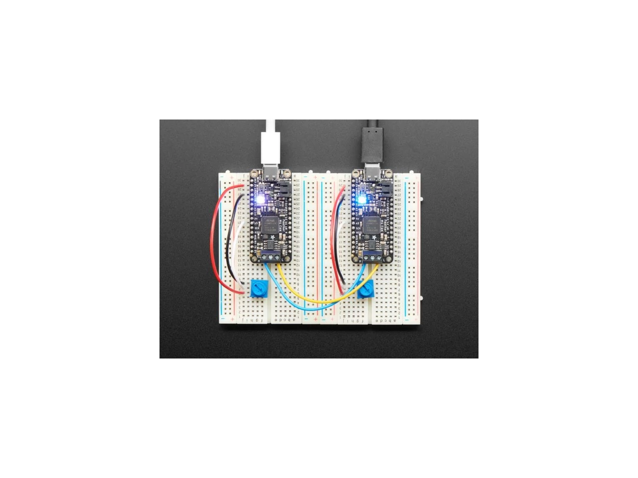 At the end of the board we have placed a CAN transceiver chip as well as a 5V converter to generate 5V power to the transceiver even when running on battery. The two CAN signal lines and ground reference signal are available on a 3-pin 3.5mm terminal block. The chip and booster can be put to sleep for power saving. The built in CAN can read or write packets and has support in both Arduino and CircuitPython.