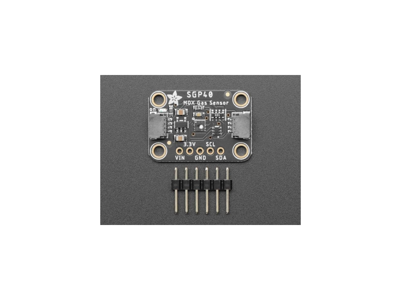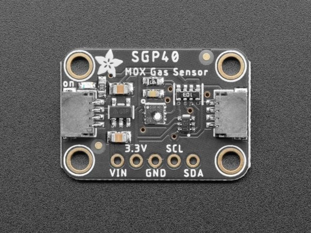 This is a gas sensor that can detect a wide range of Volatile Organic Compounds (VOCs) and H2 and is intended for indoor air quality monitoring. The SGP40 is the next generation after the SGP30, but does not give TVOC/eCO2 values out like the SGP30. Instead, raw signal from the sensor is processed using their software algorithm to give an overall 'air quality' value form 0 to 500.