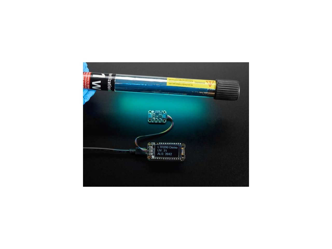 To make using it as easy as possible, we’ve put the LTR390 on a breakout PCB in our Stemma QT form factor with a sprinkle of support circuitry to give you options when testing. You can either use a breadboard or the SparkFun qwiic compatible STEMMA QT connectors, and compatibility with 5V voltage levels as commonly found on Arduinos, as well as 3.3V logic used by many other boards like the Raspberry Pi or our Feathers. QT Cable is not included, but we have a variety in the shop for quick plug-and-play support.