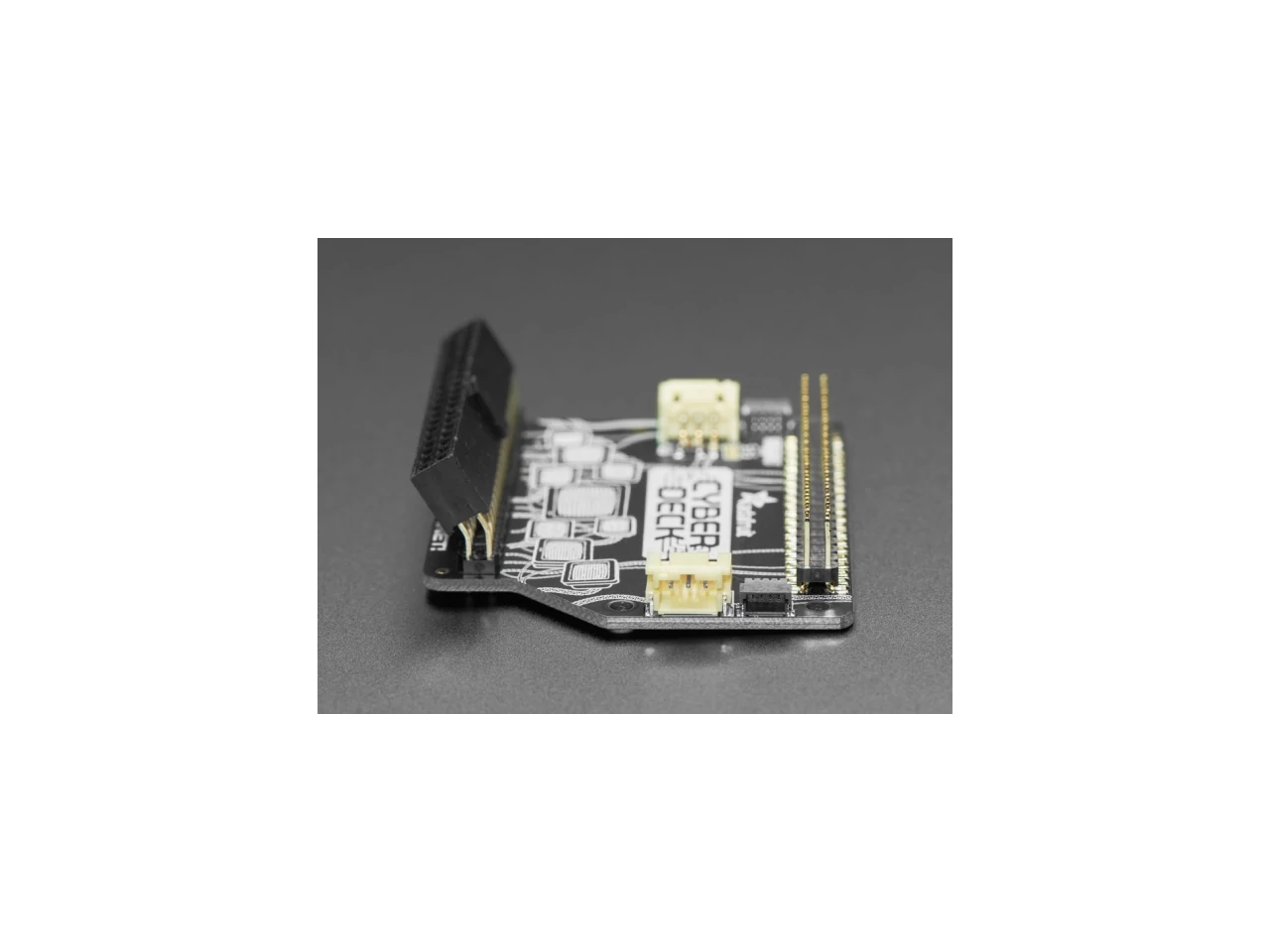 Well, we just fenced 12 megabytes of ram and some angled socket header from the underground hacker club next to the chatsubo, and it's a major upgrade to our extender board - now you can jack in any Pi bonnet into the back of your Pi 400's skull at a cool angle, perfect for augmenting your deck! We also give you two STEMMA (JST 3-PH) connectors on GPIO #18 and #13, and twin STEMMA QT I2C port plugs, for additional upgrades (cables sold separately)