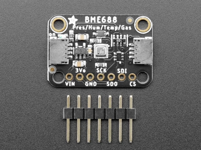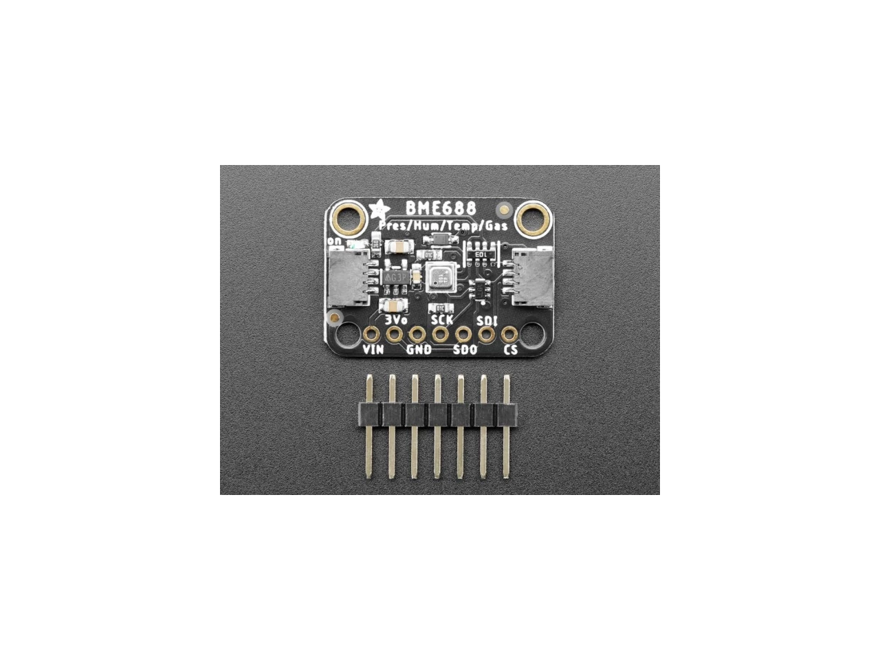Kényelmed érdekében az érzékelőt egy 3,3 V-os szabályozóval és némi szinteltolással ellátott NYÁK-on helyezték el, így könnyen használható a kedvenc 3,3 V-os vagy 5 V-os mikrokontrolleredhez. A BME688 összes kivezetése szabványos 0,100"/ 2,54 mm-es osztású, hogy tüskesorral breadboard-on is használható legyen. Ha nem szeretnél forrasztást, akkor használd hozzá Stemma QT csatlakozóinkat. Ezekkel a praktikus csatlakozókkal egyszerűen beköthető az érzékelő, nincs szükség forrasztásra! A QT kábel nem tartozék, de boltunkban többféle is kapható.