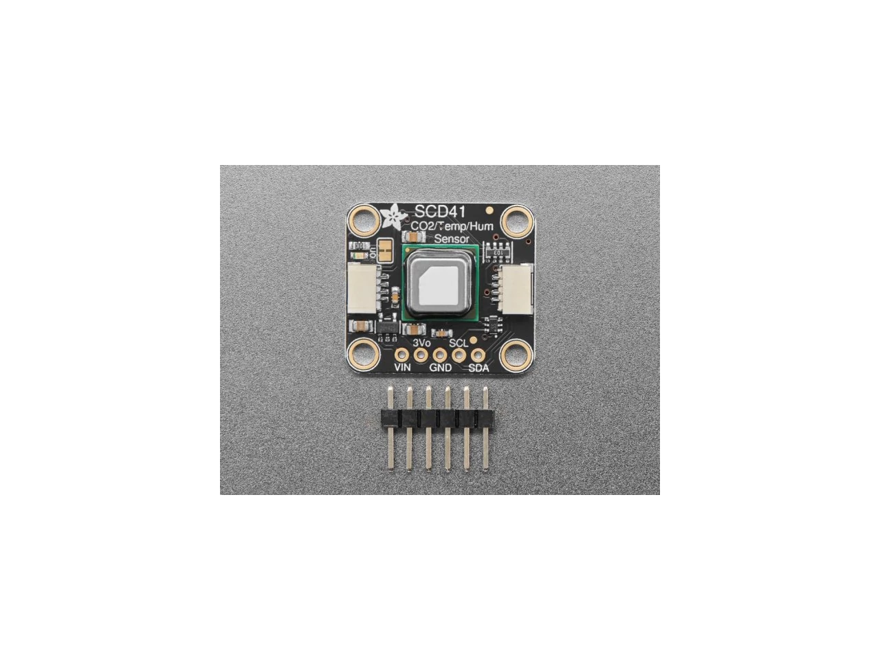 Az SCD-41 egy fotoakusztikus "valódi" CO2-érzékelő, amely megadja a környezeti levegő CO2 PPM (parts-per-million) értékét. Az SGP30-al ellentétben ez az érzékelő nem a VOC gázkoncentrációból közelíti meg, hanem valóban a CO2 koncentrációt méri! Ez azt jelenti, hogy nagyobb és drágább, de mégis ez az igazi. Tökéletes környezeti érzékeléshez, tudományos kísérletekhez, levegőminőségi és szellőzési vizsgálatokhoz és még sok máshoz.
