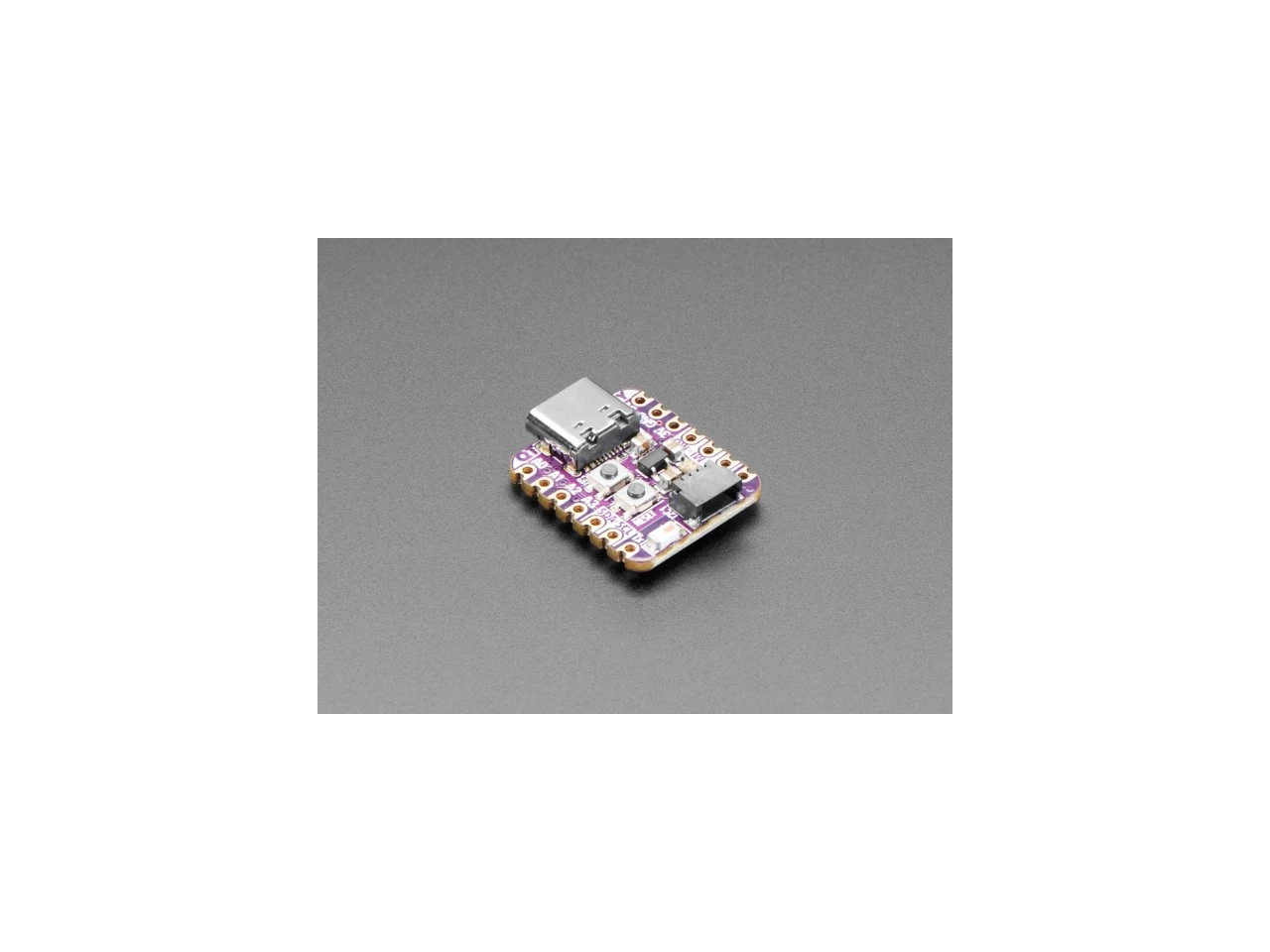 Pinout and shape are Seeed Xiao compatible, with castellated pads. In addition to the QT connector, we also added an RGB NeoPixel (with controllable power pin to allow for ultra-low-power usage), a reset button (great for restarting your program or entering the bootloader), and a button on GPIO 0 for entering the ROM bootloader or for user input
