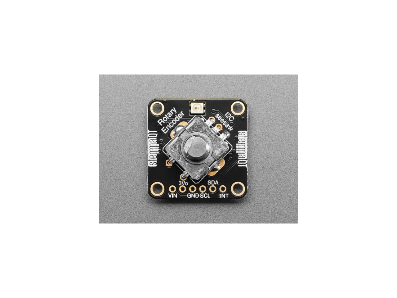 Ez a Stemma QT csatlakozós panelre szerelt változat megszünteti a frusztrációt - előre be van forrasztva a "szabványos" PEC11-es kivezetésű, nyomókapcsolóval ellátott forgókódolónk és e fedélzeti mikrokontroller az ehhez illeszkedő lengőtárcsás firmware-rel programozva nyomon követi az összes impulzust és kimenetet a számunkra, majd elmenti a növekményes értéket, hogy bármikor lekérdezhessük azt I2C-n keresztül. Csatlakoztasd egy Stemma QT kábellel ezt a forgó kódkapcsolót bármilyen mikrokontrollerhez, az Arduino UNO-tól egészen a Raspberry Pi-ig.
