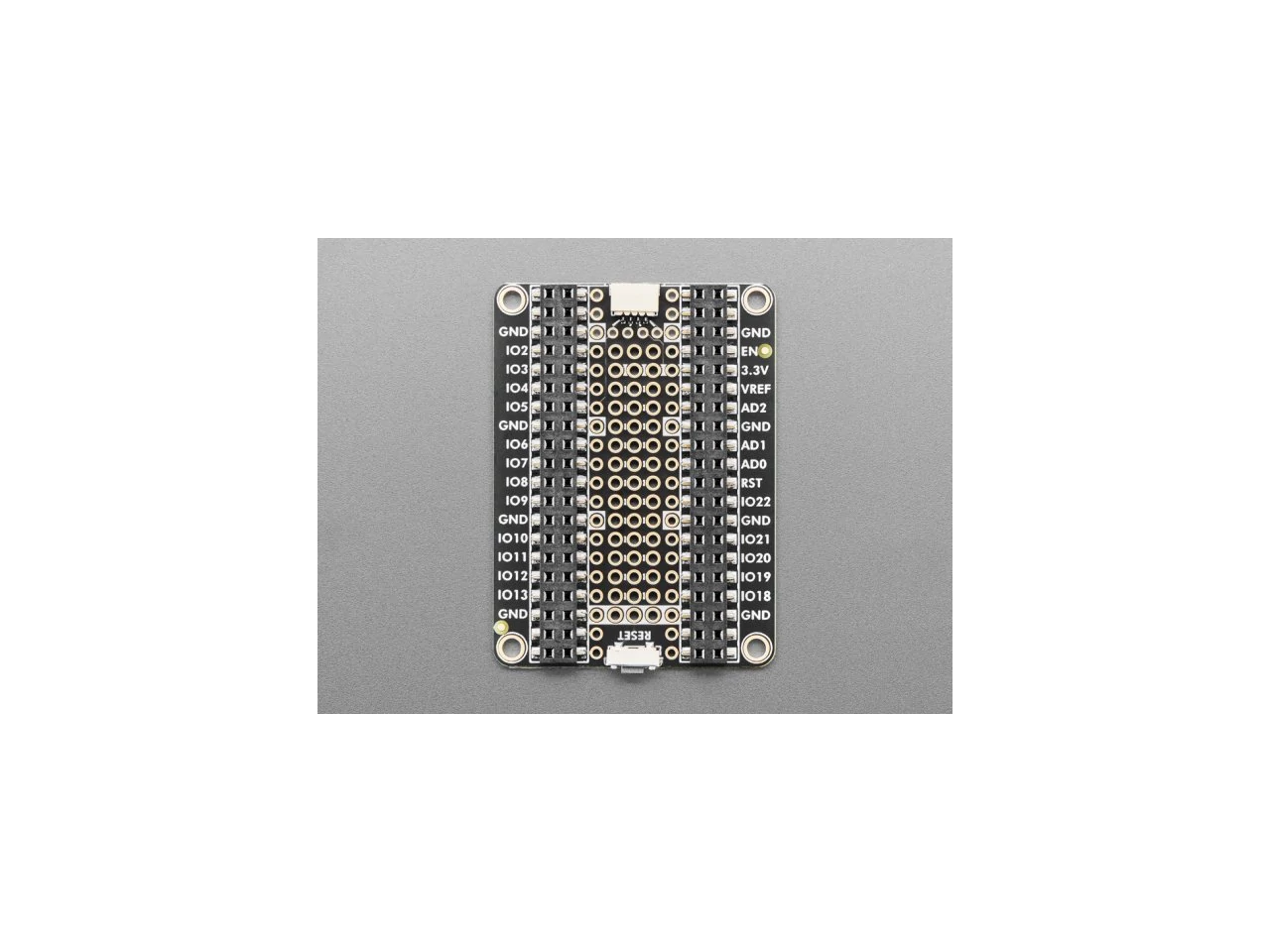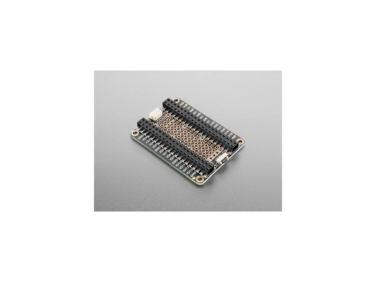 There is an extra set of 4 breakout holes next to the JST SH if you want more I2C connections or want to re-assign the I2C port. - 3 hole-connected strips are in the center area. You can cut the traces between the holes, but they're intended to be treated like a mini-mini breadboard