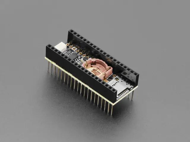 Does not come with a micro SD card or a coin cell battery. A CR1220 coin cell is required to use the RTC battery-backup capabilities! We don't include one by default to make shipping easier for those abroad, but we do stock them, so pick one up or use any CR1220 you have handy.
