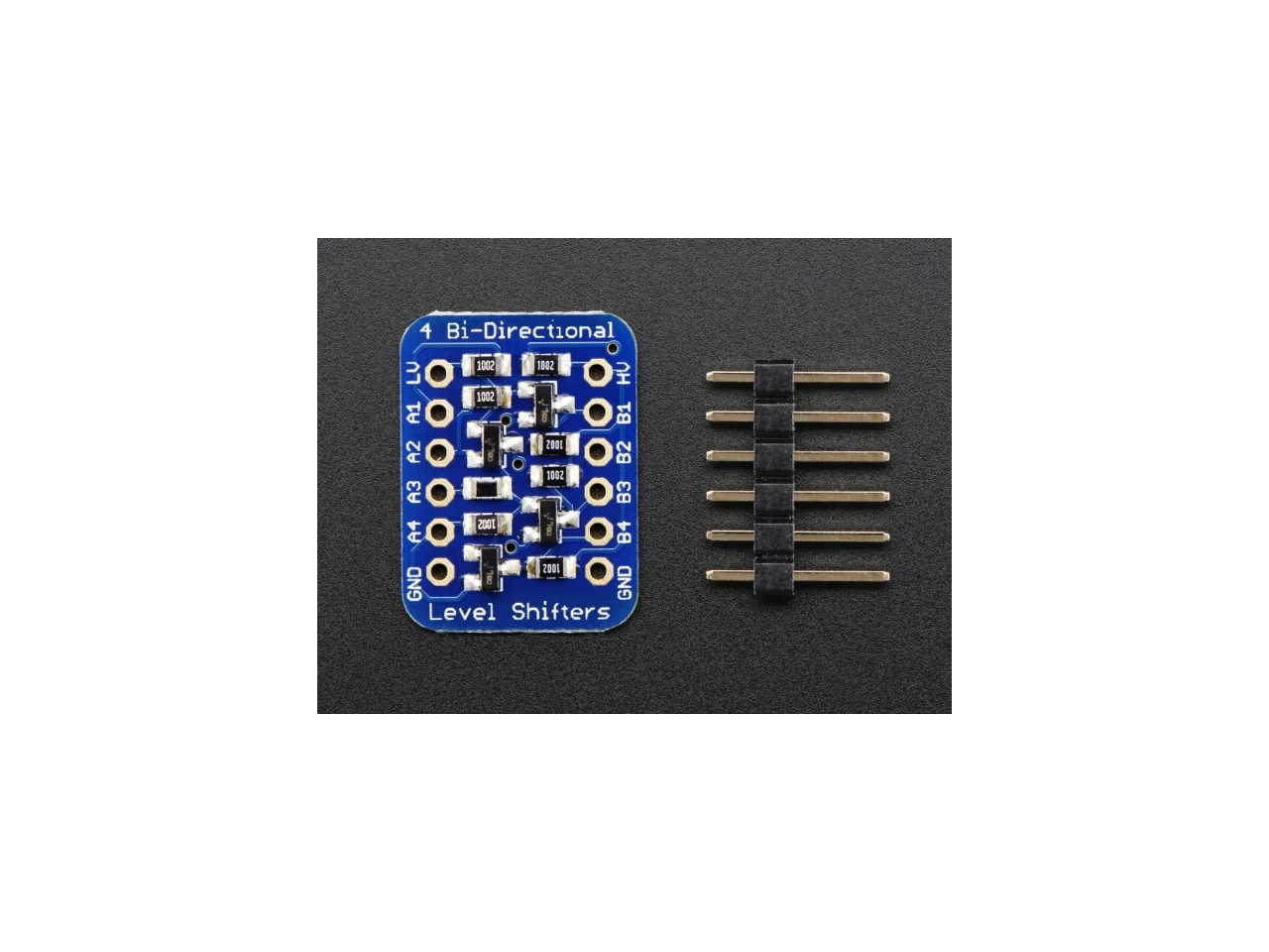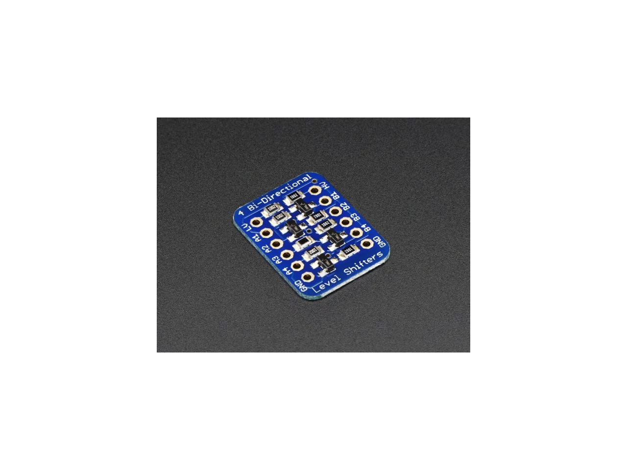 Ez a kis "breakout board" 4 darab BSS138 FET-et tartalmaz 10K értékű pullup (felhúzó) ellenállásokkal. Az alacsonyabb feszültségű oldalon 1,8 V-ig működik, míg a magasabb feszültségű oldalon pedig 10 V-ig. A 10K-k egy kicsit lassabbá teszik az interfészt, mint a TXB0108 vagy a 74LVC245 esetében, ezért javasoljuk, hogy ellenőrizd az átvitelt, nagy sebességre van szükséged. Szintén nem javasolt alkalmazás terhelések meghajtására a magas szintű oldalt. Ez csak logikai szintű konverziót végez, és nem terhelhető kimenetet ad.