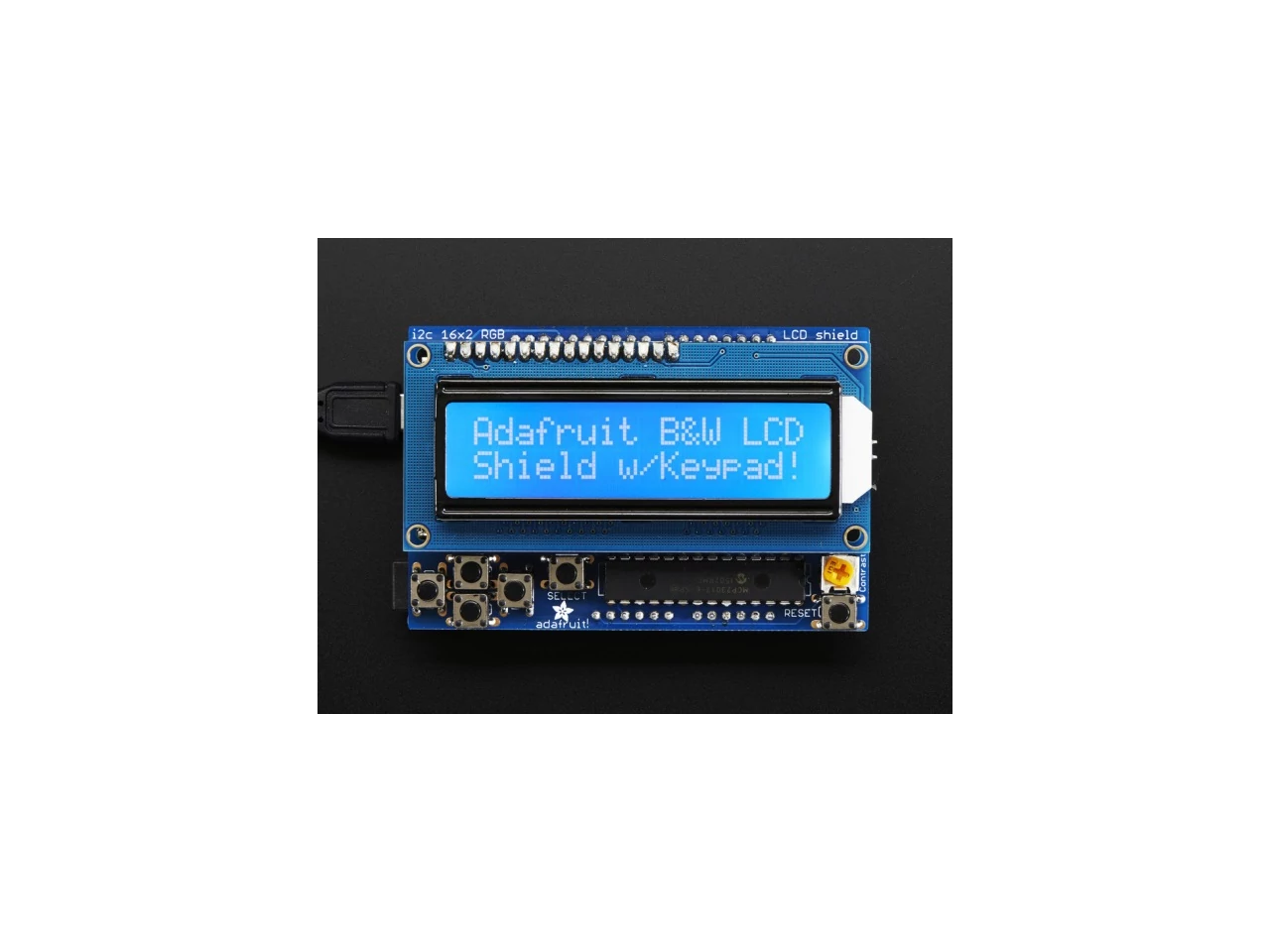 Elsősorban Arduino panelekhez készült, de Raspberry Pi-hoz is használható 16x2-es LCD + tasztatúra KIT. Bővebb információ az Adafruit oldalán: