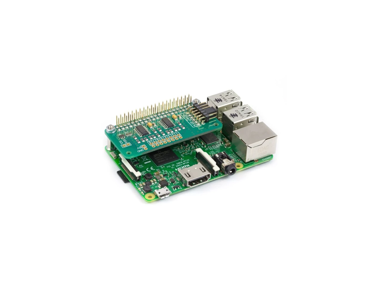 The ADC Pi is powered through the host Raspberry Pi using the GPIO port and extended pins on the GPIO connector allow you to stack the ADC Pi along with other expansion boards.