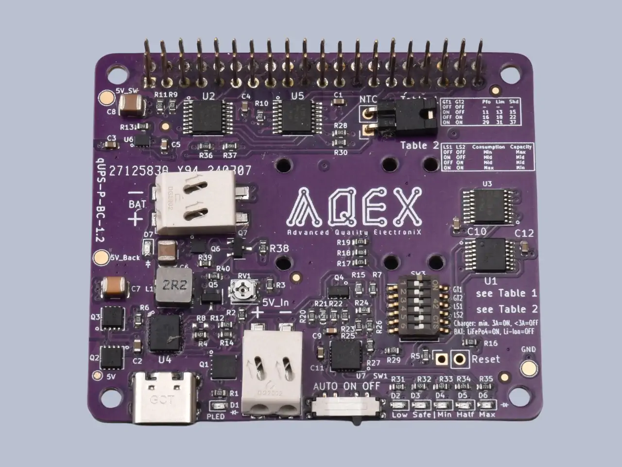 AQEX qUPS-P-BC (w/o battery) egy minőségi smart UPS modul Pi HAT kivitelben. Nem tartalmaz akkumulátort, így felhasználóként szabadon választhatunk hozzá tetszőleges Li-ion, Li-Polimer vagy LiFePo4 típust, mellyel hosszabb idejű áramkimaradások elleni védelmet biztosíthatunk kifejezetten Raspberry Pi HAT kompatibilis GPIO 40-es tüskesorral szerelt egylapkás számítógépünk számára. A termék fejlesztésekor fontos szempont volt, hogy a legújabb generációs Raspberry Pi 5-ös alaplapok megnövekedett teljesítmény igényét is tartósan ki tudja szolgálni megfelelő kapacitású akkumulátorral szerelve. Ehhez általunk javasolt 4Ah kapacitású LiFePo4 akkuval együtt itt található a termék !