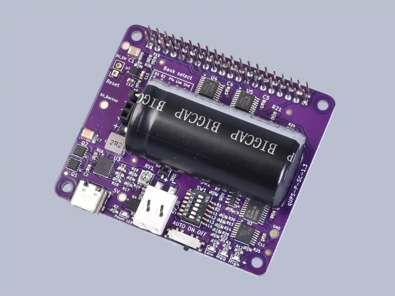 AQEX qUPS USB-C panel egy smart szuperkapacitás alapú szünetmentes tápegység Raspberry Pi alaplapokhoz a pillanatnyi vagy rövidtávú áramkimaradás elleni védelem érdekében. 2025.02.20-tól 1.3-as verzió új funkciókkal.