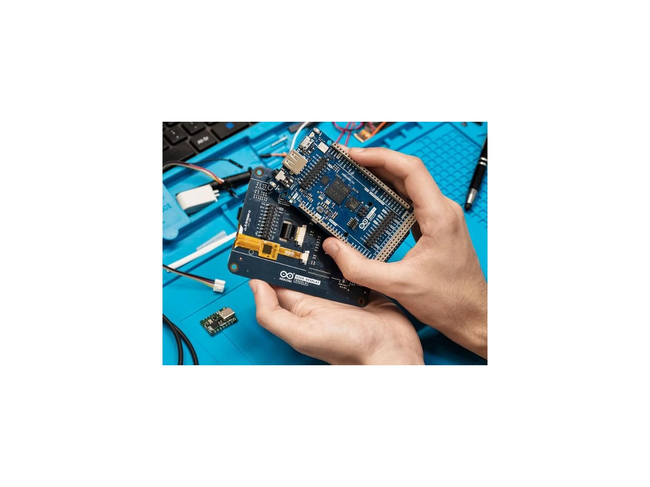 A GIGA Display Shield segítségével számos funkcióhoz, többek között digitális mikrofonhoz, 6 tengelyes IMU-hoz és Arducam csatlakozóhoz juthatsz hozzá. Ezek a plusz képességek lehetővé teszik, hogy a Giga vezérlő többi 54 darab rendelkezésre álló kivezetése teljes egészében hozzáférhető legyen, így ez a megoldás hihetetlenül kényelmes kézi eszközök vagy műszerfalak létrehozásához lehetővé téve egy adott projekt vezérlését.