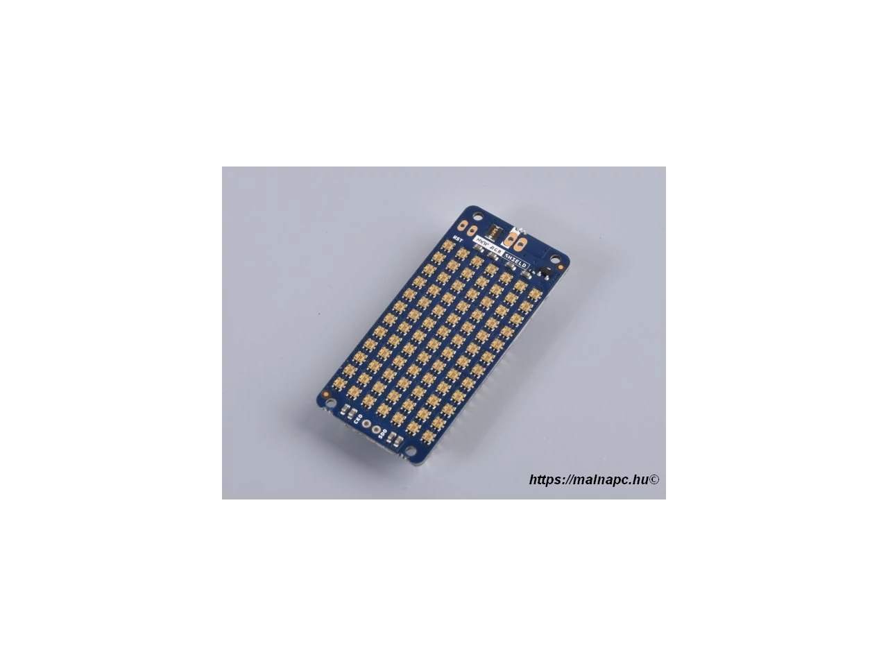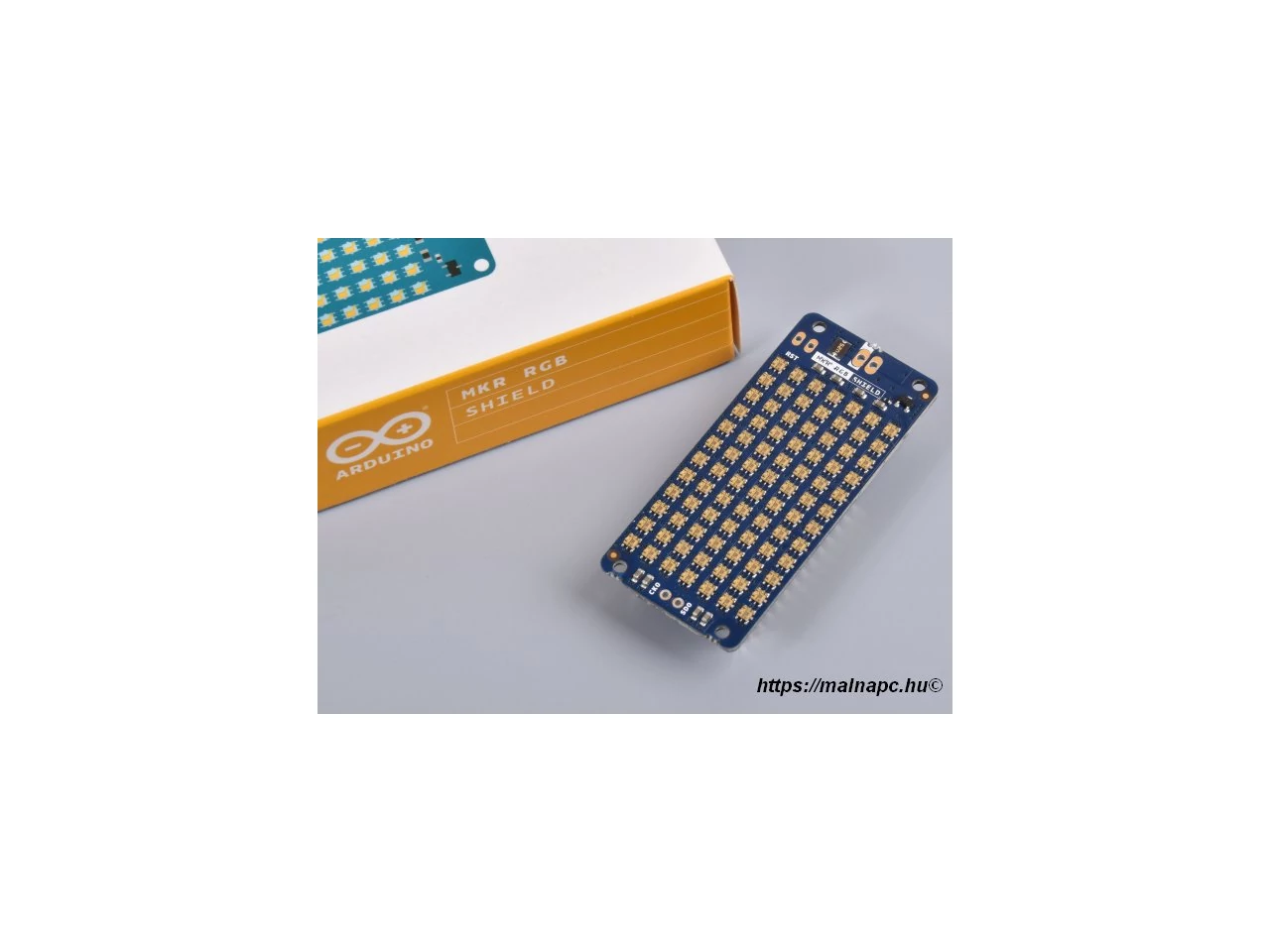 A beszerelt LED-ek nagyon sűrűek és fényesek, teljes RGB színekkel. Ne hagyd ki a getting started útmutatót, amely mindent elmagyaráz, ami a pajzs használatához szükséges!